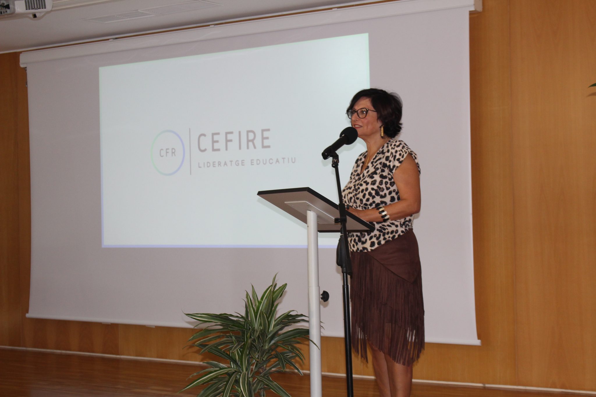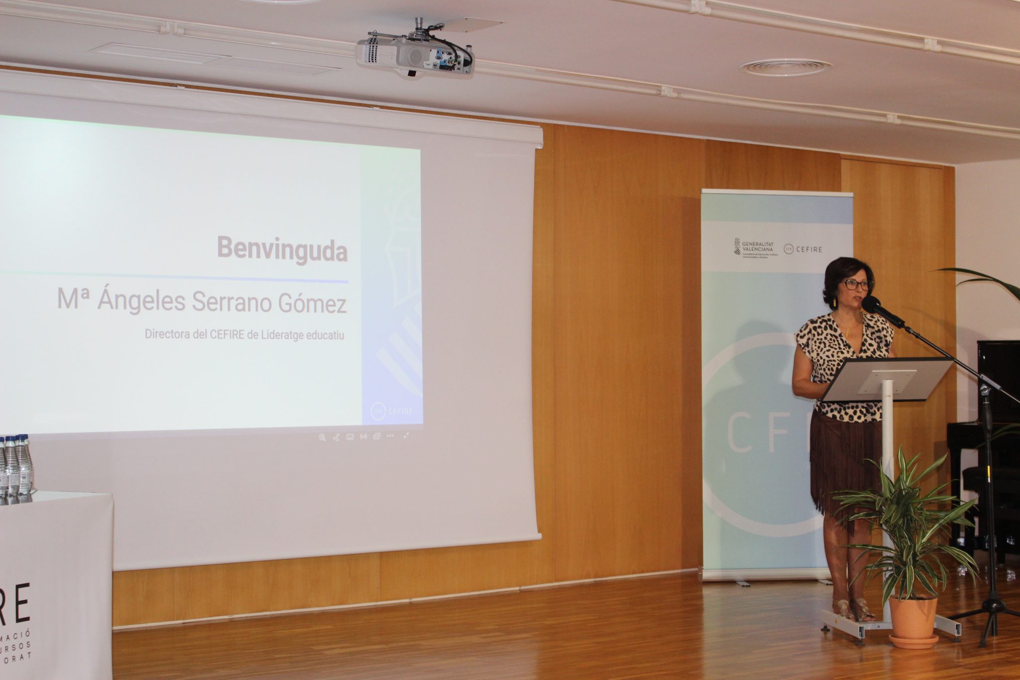 Maria Ángeles Serrano, directora del CEFIRE específic de Lideratge educatiu, va ser l’encarregada de donar la benvinguda a les persones assistents i va destacar que “este CEFIRE ha sigut creat amb la pretensió de millorar les competències professionals i les habilitats personals dels membres dels equips directius dels centres docents” i amb el compromís de ser “lloc de trobada, de formació i d’acompanyament” per a ells.