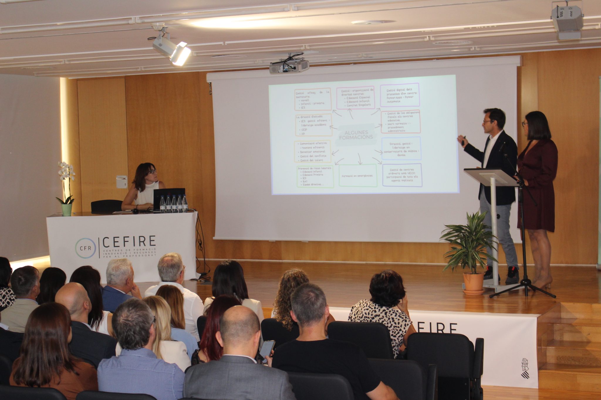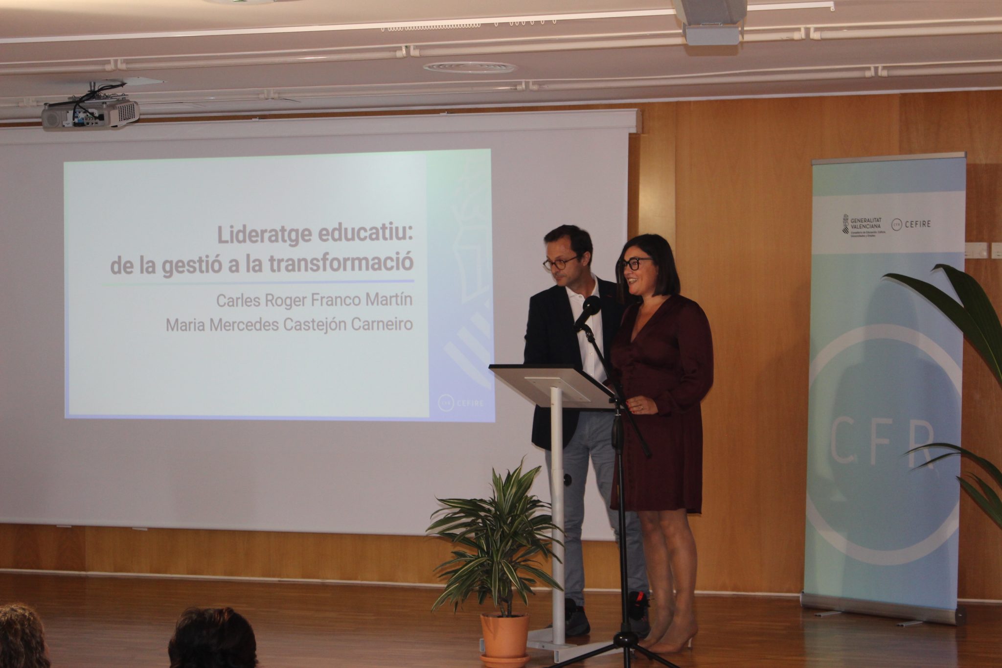 Posteriorment, la ponència realitzada per dos assessors de l’equip del CEFIRE de Lideratge educatiu, Mercedes Castejón i Carles Roger Franco, titulada “Lideratge educatiu: de la gestió a la transformació”, va desenvolupar el concepte de líder, els tipus de lideratge i els objectius i línies estratègiques que s’han proposat en este nou centre de formació del professorat.
