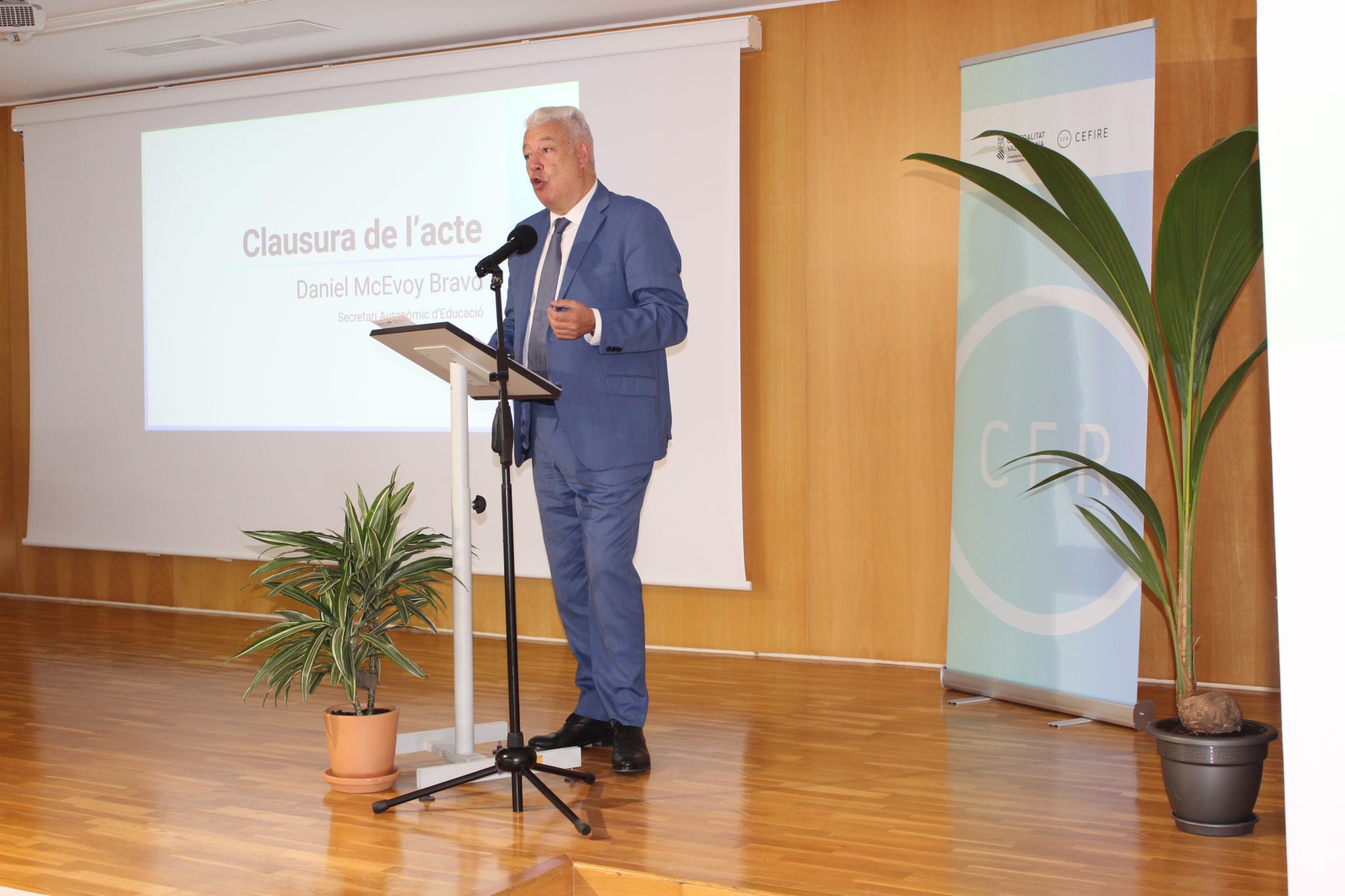 Va clausurar l’acte el secretari autonòmic d’Educació, Daniel McEvoy Bravo, qui va destacar la importància de reforçar el lideratge de les direccions dels centres educatius i d’oferir-los “una formació d’excel·lència” com la que s’imparteix “des del nou i pioner CEFIRE de Lideratge educatiu de la ciutat d’Elx”. El titular de la Secretaria Autonòmica d’Educació va agrair a l’EOI d’Elx, a l’equip del CEFIRE de Lideratge, així com a la Subdirecció General de Formació del Professorat “l’excel·lent treball que s’està realitzant”.