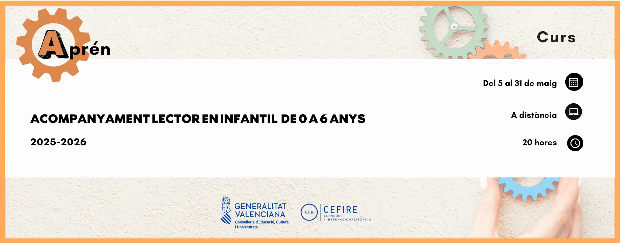 La formació “Acompanyament lector en Infantil (de 0 a 6 anys)” ofereix un recorregut complet i pràctic per entendre i impulsar el desenvolupament lector en la primera infància. Al llarg de sis sessions, abordarem les bases de la lectura en els primers anys de vida, aprofundirem en l’itinerari lector dels 0 als 6 anys i farem un passeig per les diferents tipologies de llibres adreçats a aquesta etapa, descobrint-ne el valor pedagògic i les possibilitats a l’aula. També reflexionarem sobre pràctiques i modalitats de lectura, així com sobre els objectius de centre, per culminar amb l’elaboració i el desplegament d’un pla de treball adaptat a la realitat de cada escola. Una proposta pensada per inspirar, dotar d’eines i reforçar el compromís amb una educació lectora de qualitat des dels primers anys.