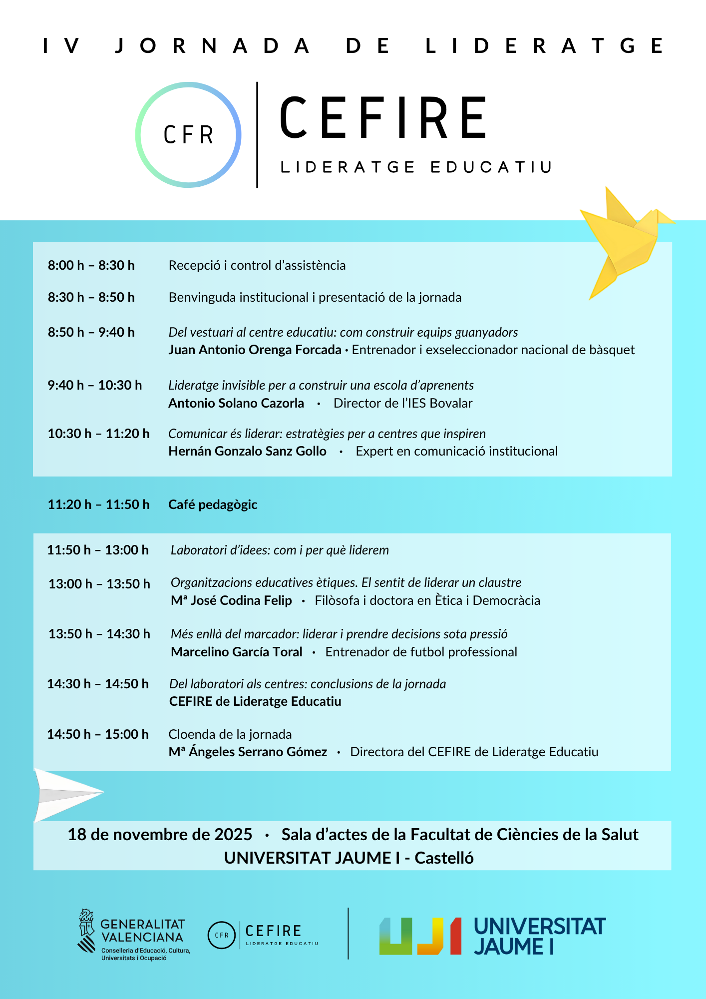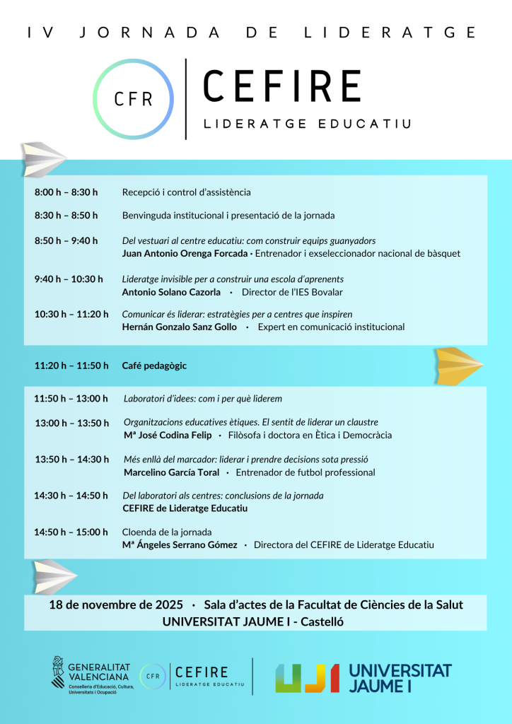 Entre les formacions més destacades es troben el Màster en Direcció i Gestió de Centres Educatius (UNIR), el Curs d’Especialització en Docència Compartida (UAB) i la formació específica en Lideratge per a l’Aprenentatge, entre altres.