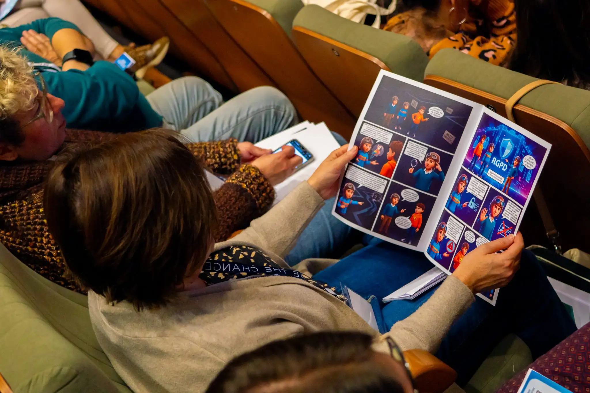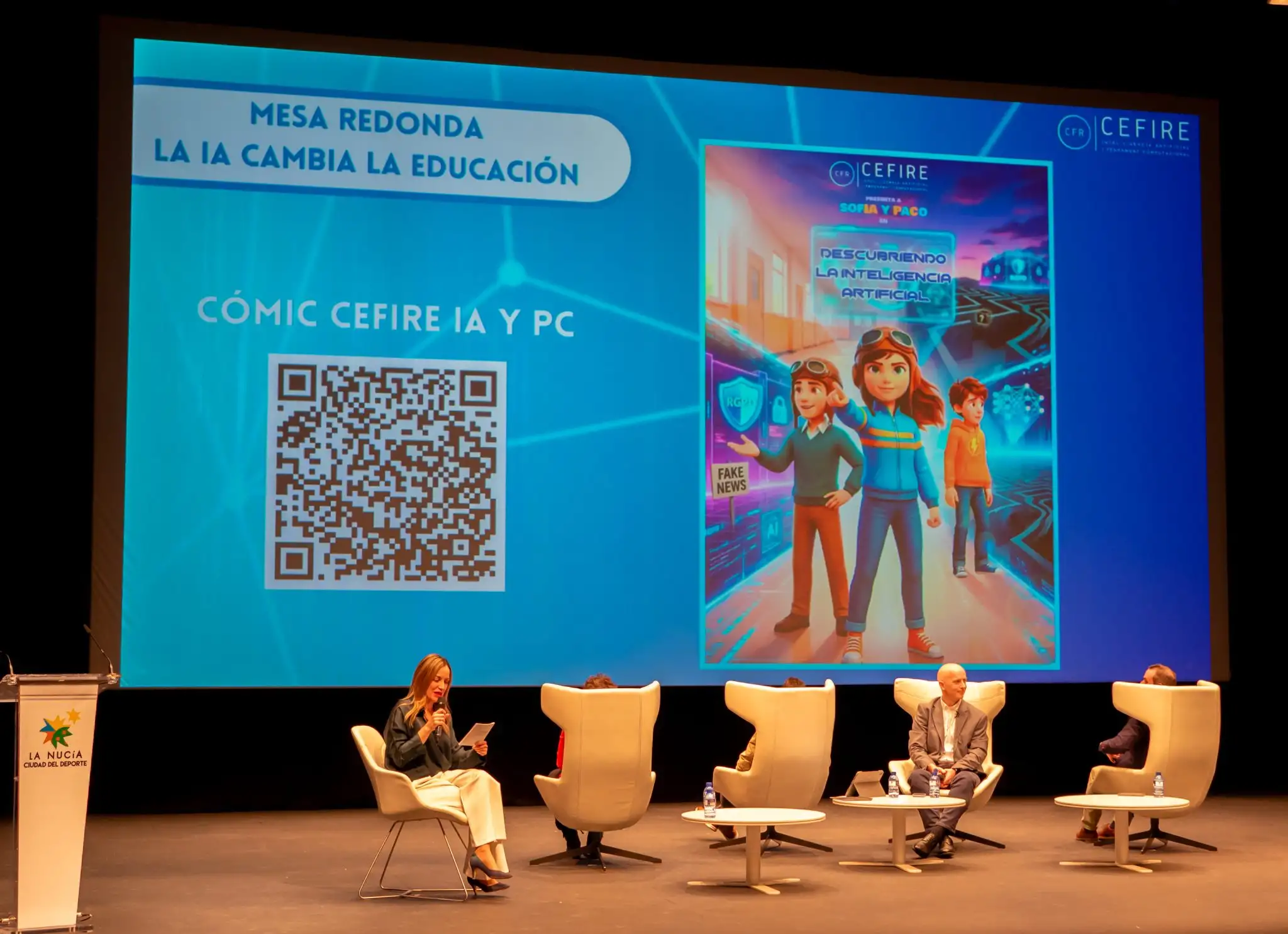 Un altre dels moments destacats va ser la presentació del còmic del CEFIRE d’IA i PC “Descobrint la Intel·ligència Artificial”, una proposta divulgativa orientada a acostar els conceptes clau de la IA a l’àmbit educatiu de manera accessible i motivadora. Esta iniciativa va posar de manifest l’aposta del CEFIRE per generar recursos innovadors que faciliten la comprensió crítica de la tecnologia tant per a docents com per a alumnat.