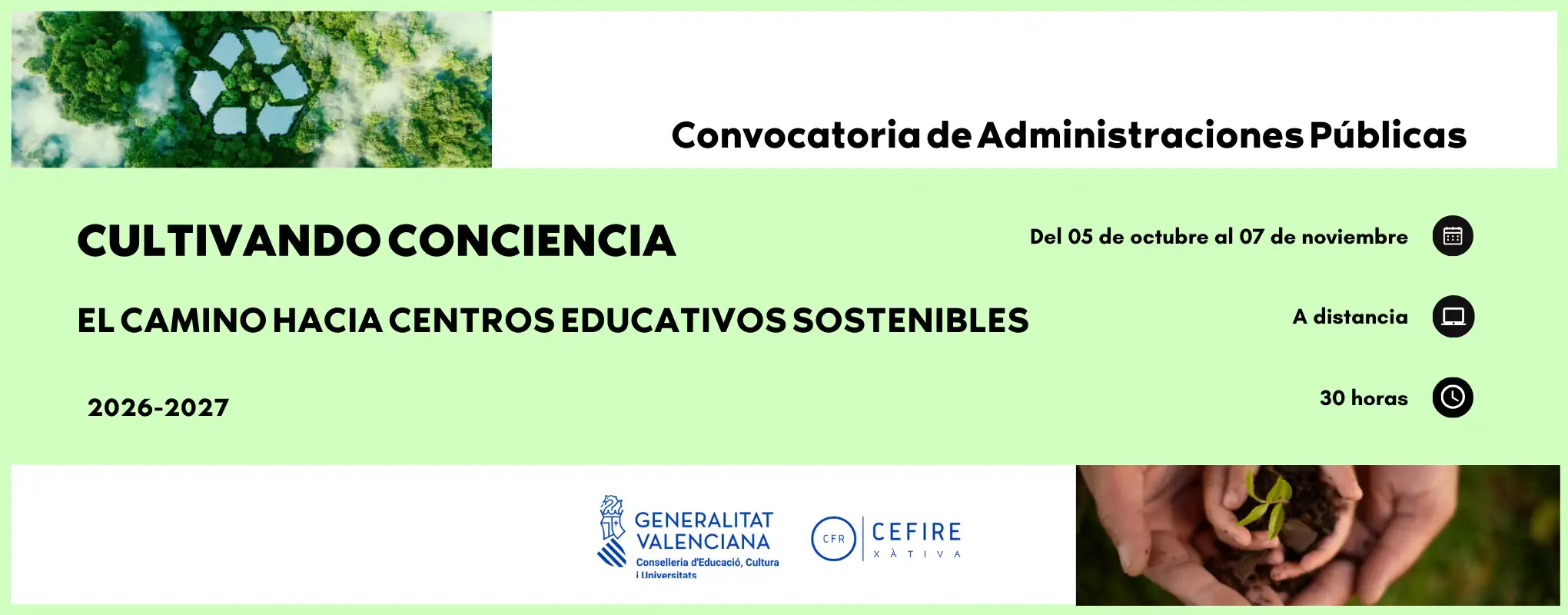 ![[26XA72IN007] Cultivando conciencia. El camino hacia Centros Educativos Sostenibles](https://portal.edu.gva.es/cefire/wp-content/uploads/sites/1992/2026/03/26XA72IN007-Cultivando-conciencia.-El-camino-hacia-Centros-Educativos-Sostenibles.webp)