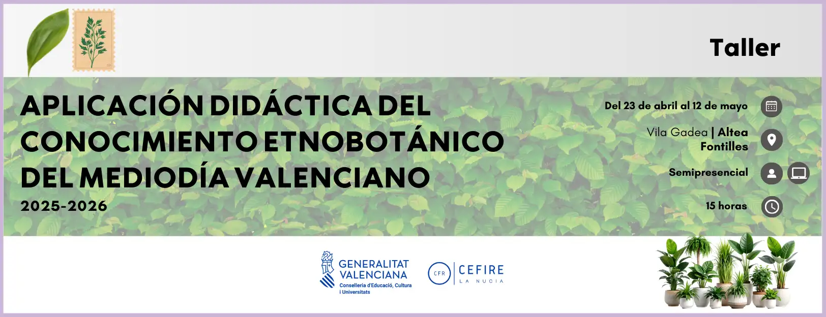 Formación orientada a dar a conocer el patrimonio etnobotànic del mediodía valenciano y a explorar como integrarlo en la práctica educativa. A partir del estudio de las plantas que nos rodean, sus usos tradicionales (medicinales, alimentarios y culturales) y el conocimiento popular asociado, el curso ofrece recursos y actividades didácticas para trabajar estos contenidos en el aula. El objetivo es fomentar la educación ambiental, la valoración del patrimonio local y el aprendizaje contextualizado mediante metodologías activas e interdisciplinarias.