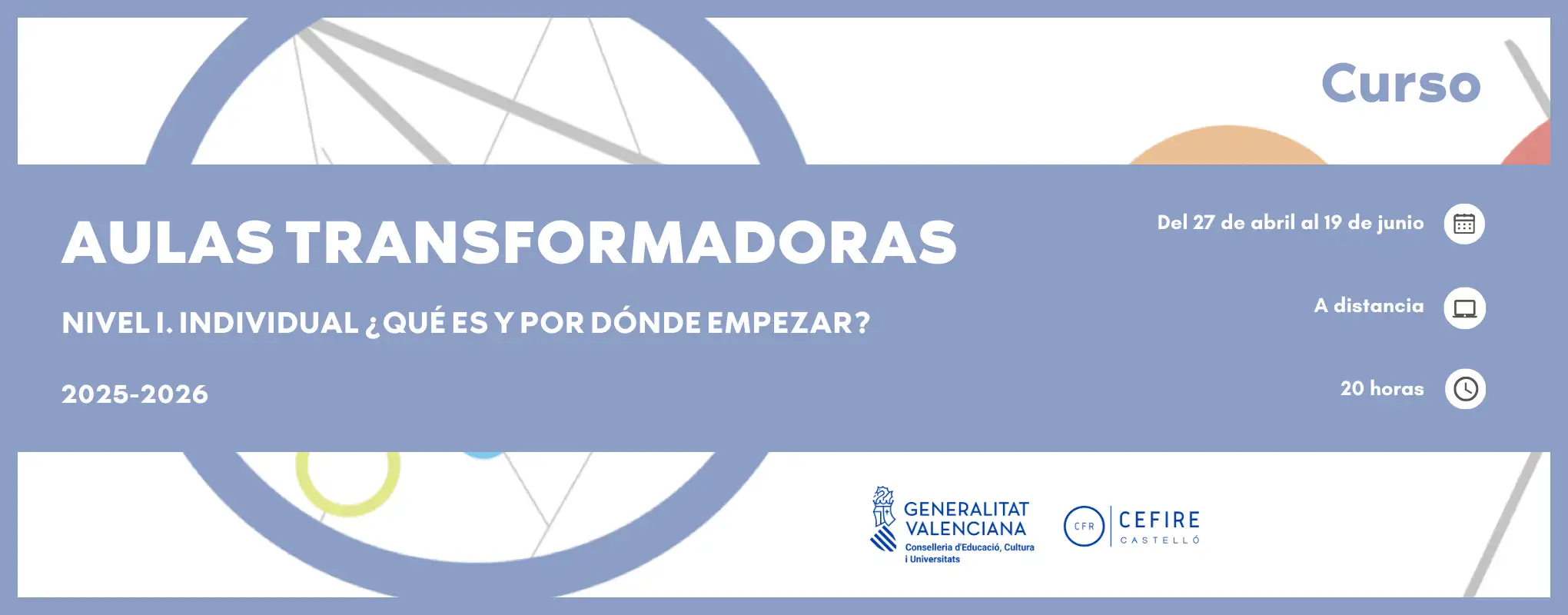 ¿Quieres innovar y responder a los retos educativos del siglo XXI? Inscríbete en el Nivel I de Aulas Transformadoras y da el primer paso hacia el cambio. Esta formación es la puerta de entrada al proyecto Aulas Transformadoras, inspirado en iniciativas internacionales como Aula del Futuro y Future Classroom Lab. A lo largo del curso conocerás en profundidad el proyecto, descubrirás nuevas formas de organizar los espacios educativos, explorarás estrategias innovadoras adaptadas a distintos contextos y reflexionarás sobre la integración significativa de la tecnología en el aprendizaje. Además, conocerás experiencias reales de centros en transformación, identificarás sinergias dentro de la comunidad educativa y diseñarás tu propio plan de acción para empezar a transformar tu aula desde hoy.