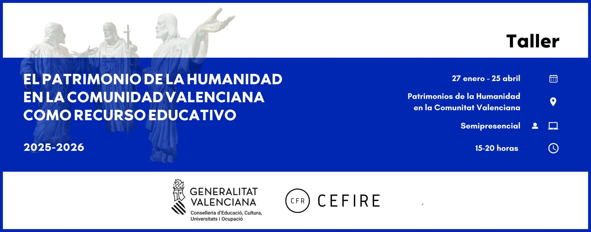 ¿Sabías que en la Comunidad Valenciana contamos con 11 elementos declarados Patrimonio de la Humanidad y dos registros de buenas prácticas reconocidos por la UNESCO? Estos recursos representan una riqueza cultural única, y desde el CEFIRE queremos ponerlos en valor y acercarlos a los docentes para que los puedan integrar en las aulas, promoviendo el conocimiento y el respeto por nuestro legado.