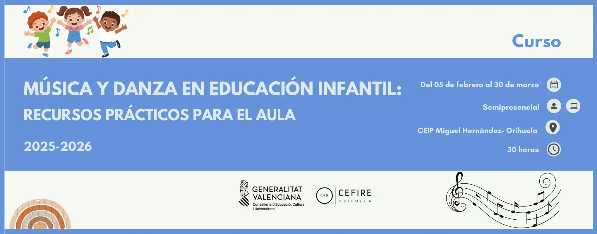 Otro de los ejes del curso es el fomento de la expresión corporal y la creatividad mediante actividades rítmicas accesibles y motivadoras, así como la integración de estas propuestas en situaciones de aprendizaje alineadas con el currículum de la Comunidad Valenciana. Todo esto con el objetivo de potenciar hábitos de vida saludable y rutinas físicas variadas con el apoyo de la música.