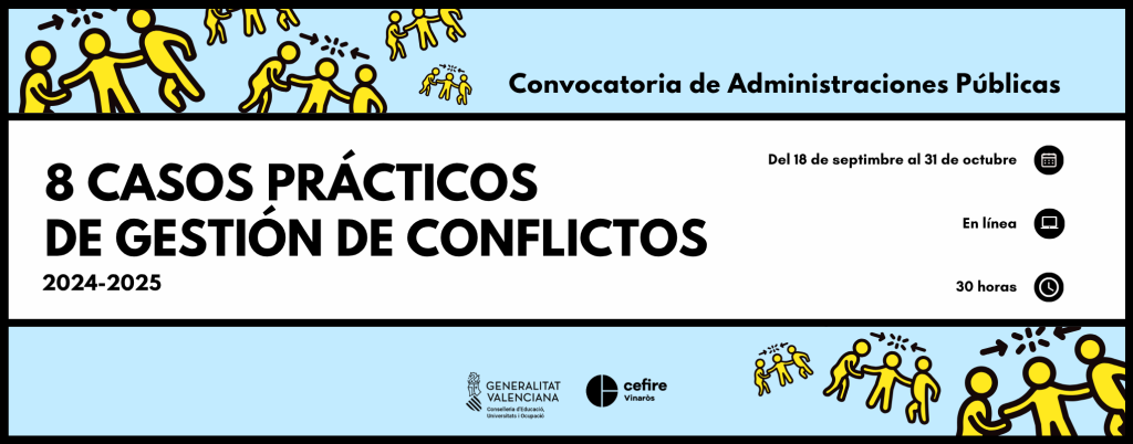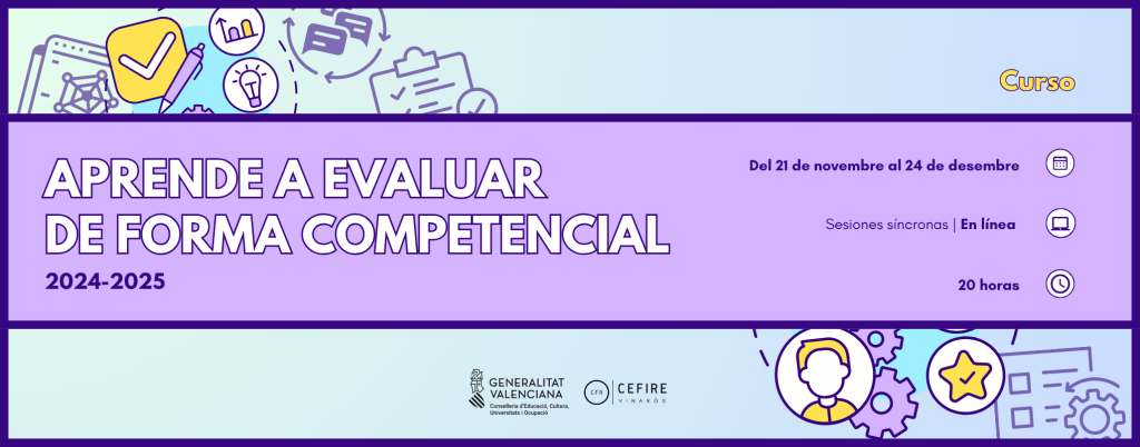 Durante el curso 2024-25, con la intención de fomentar la formación presencial, el CEFIRE de Vinaròs ha realizado las acciones formativas que encontraréis en la galería de banners de abajo. Hay que tener en cuenta, sin embargo, que en el segundo trimestre los recursos se han destinado a tratar de reparar las consecuencias de la DANA y que, por lo tanto, las formaciones de toda la red CEFIRE se han llevado a cabo en línea.