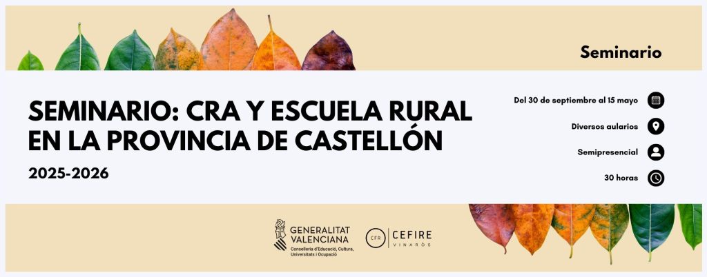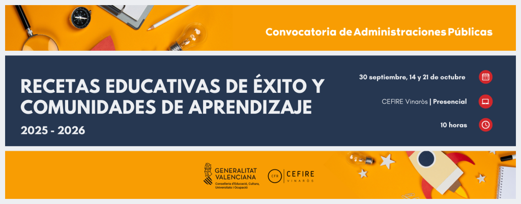 Durante el curso 2025-26, con la intención de fomentar la formación presencial, el CEFIRE de Vinaròs está realizando las acciones formativas que encontraréis en la galería de banners de abajo.