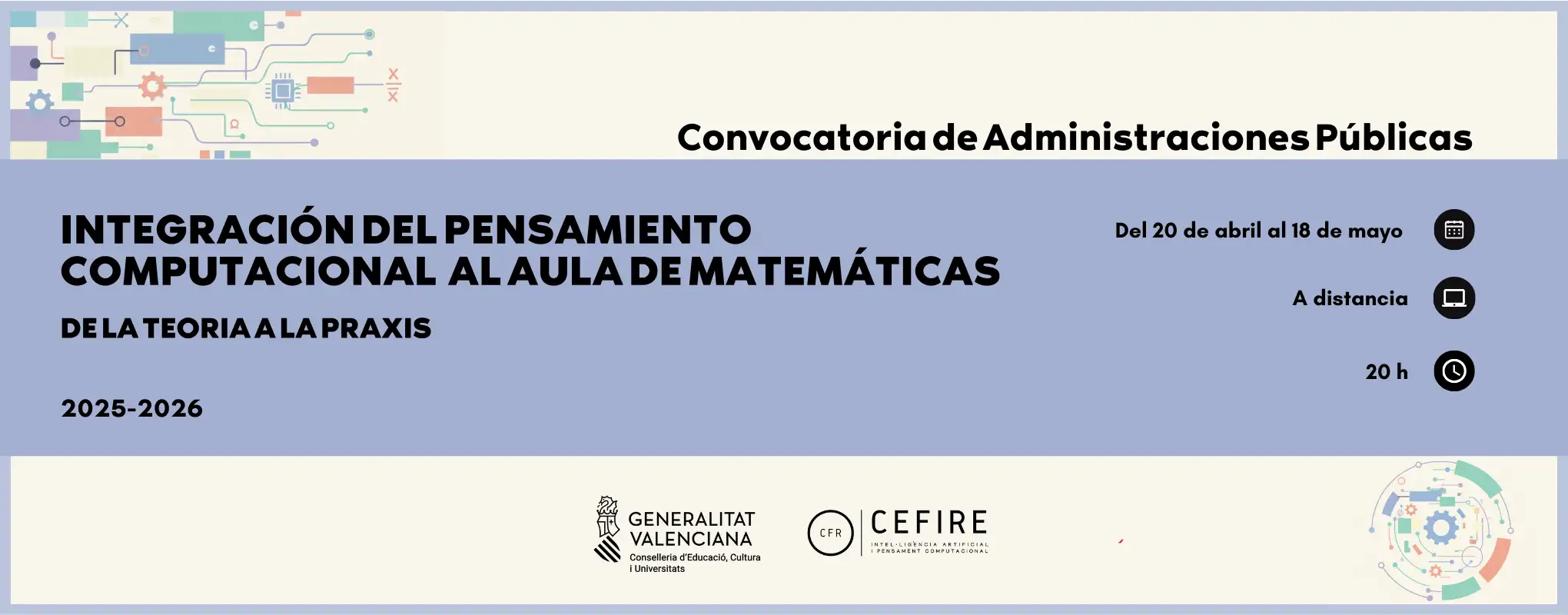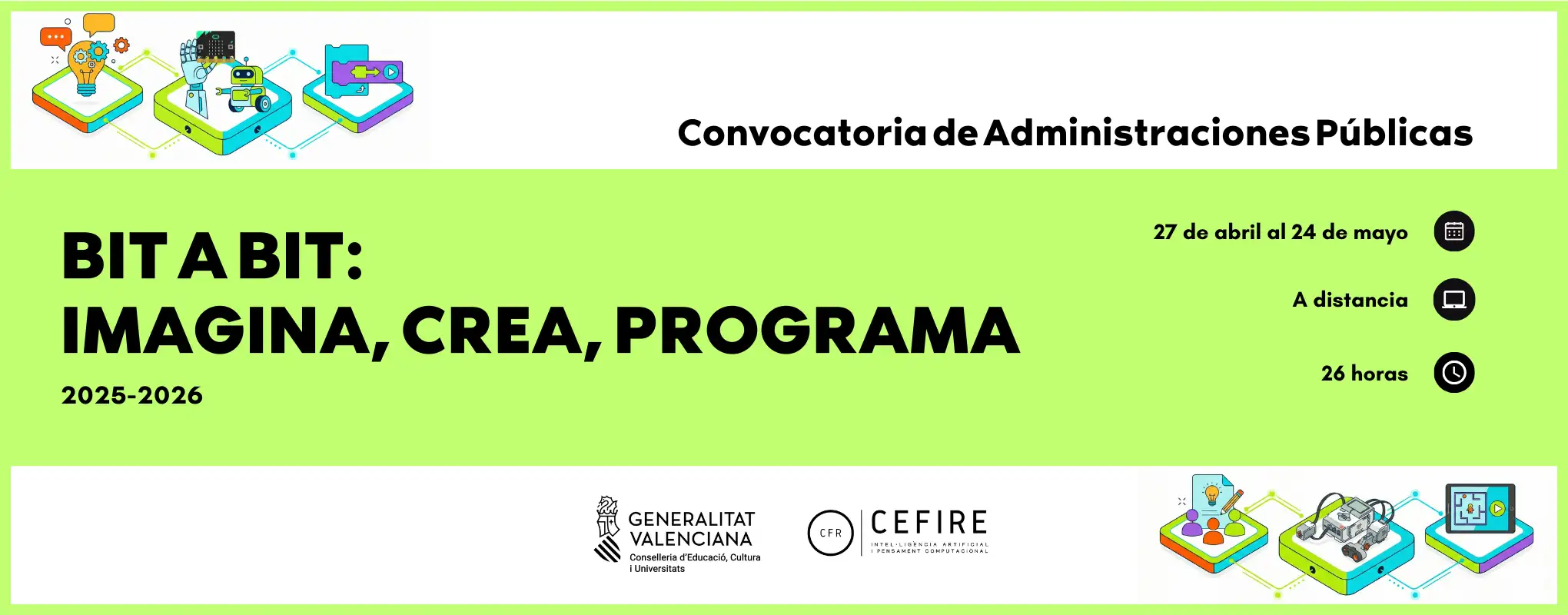 Impulsamos un plan de actuación formativo especializado en pensamiento computacional, inteligencia artificial, programación, robótica y tecnologías afines, con el objetivo de transformar la educación desde la innovación y el compromiso. Nuestro trabajo se desarrolla en coordinación con los CEFIRE territoriales y específicos para garantizar la coherencia y transversalidad de las acciones, asesorando y apoyando a los centros educativos en la planificación, implementación y evaluación de proyectos didácticos.