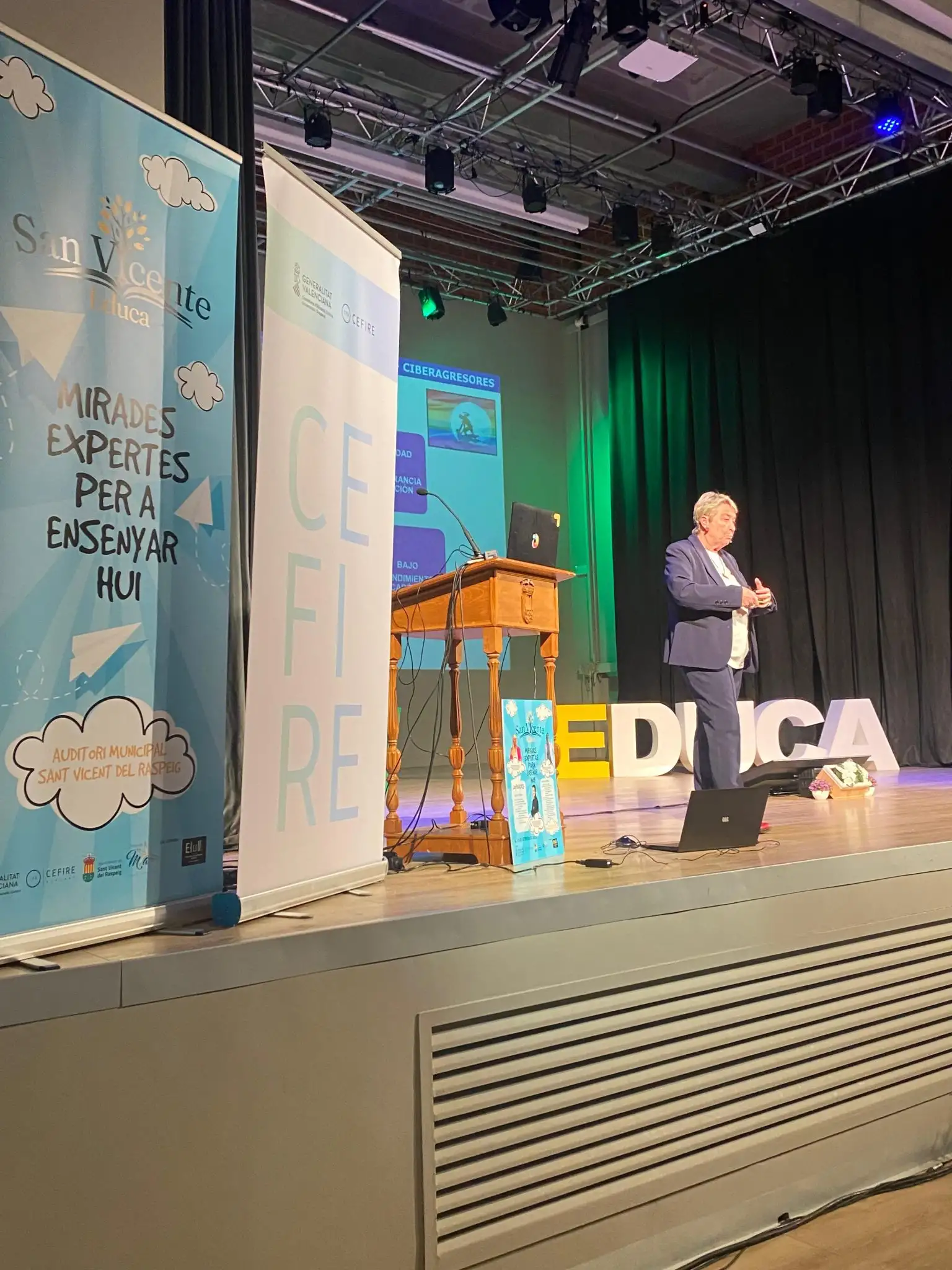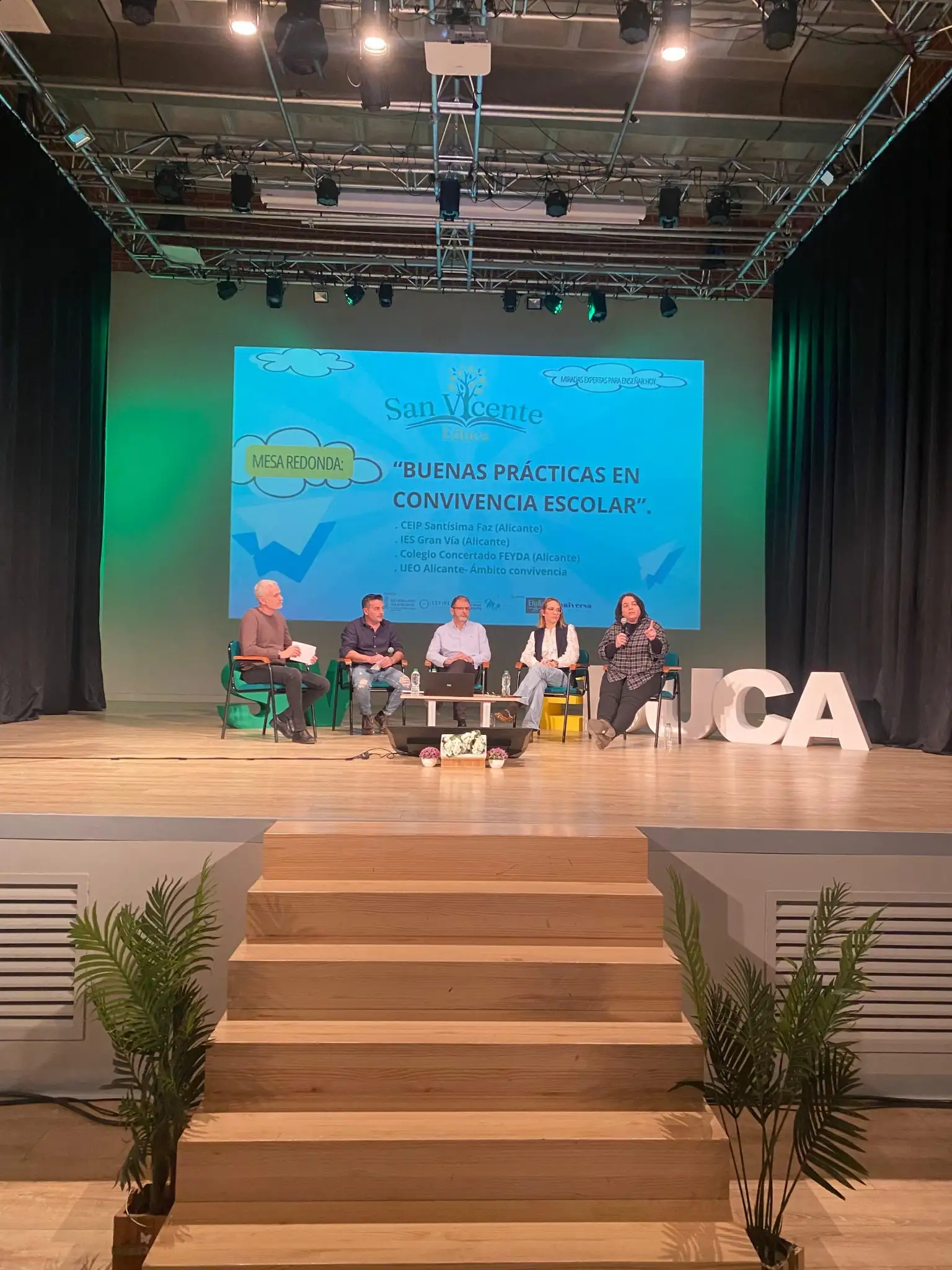 La segunda jornada se centró en la prevención del bullying y el acoso escolar, con ponencias de gran rigor y relevancia. Maite Garaigordobil, experta en prevención y programas de detección, analizó el fenómeno del bullying y el cyberbullying y compartió estrategias reales y efectivas de prevención e intervención para los centros educativos. Posteriormente, una mesa redonda con equipos directivos —Quique Andreu Mateos (CEIP Santísima Faz), Juan García Cabrera (IES Gran Vía), Rocío Jover Martínez (Colegio Santísimo Sacramento FEYDA) y Mari Carmen Lillo Giménez (UEO de Alicante)— permitió conocer experiencias y actuaciones concretas ante situaciones de acoso escolar.