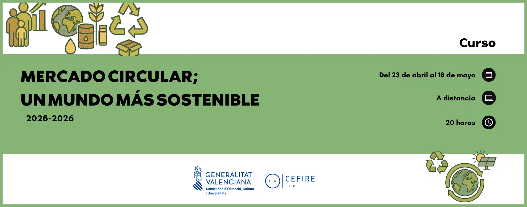 El curso tiene como finalidad promover el conocimiento del modelo de economía circular. Descubrir los beneficios que se consiguen con este cambio de modelo.