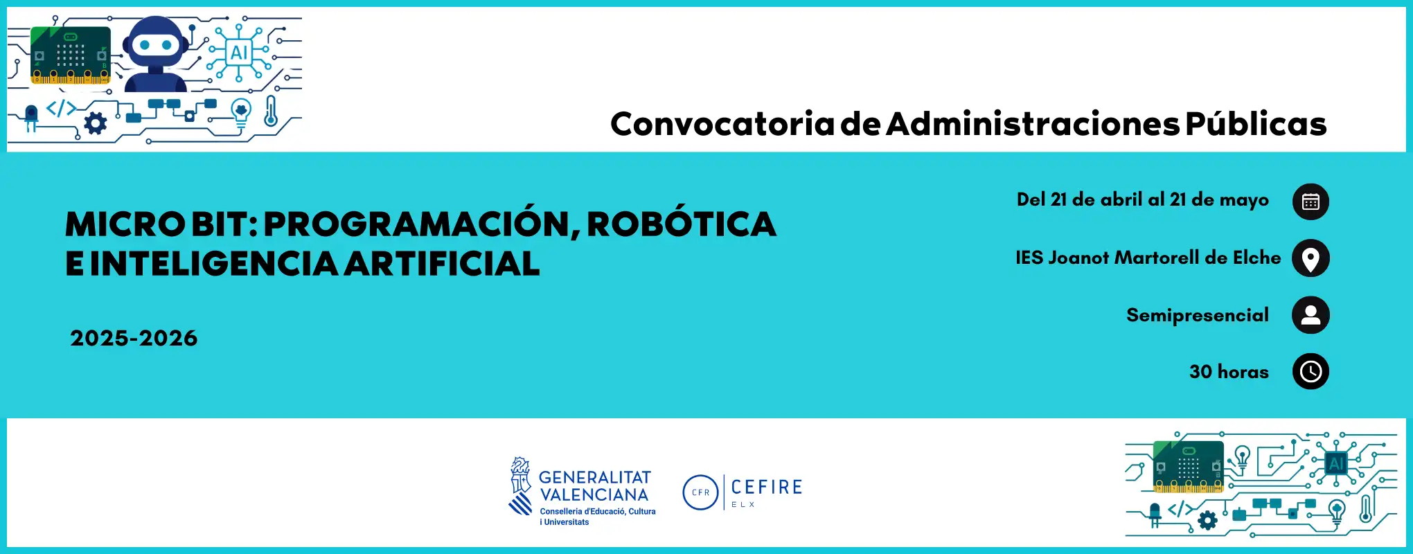 La formación se centra en el uso de la plataforma micro:bit y del entorno Microsoft MakeCode, abordando tanto la programación de sus sensores y actuadores integrados como el trabajo con componentes externos para proyectos de robótica. Además, se explorará la integración de aplicaciones de IA con micro:bit y el uso de tarjetas de expansión y robots comerciales. El curso culmina con el diseño de un proyecto final que permita al profesorado adquirir una visión global y aplicar de manera práctica todos los conocimientos trabajados.