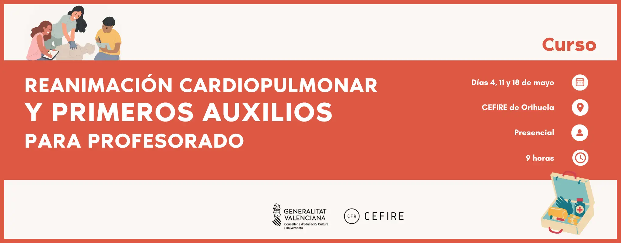 Esta formación teòrico-pràctica está diseñada para capacitar al profesorado y al personal técnico de los centros educativos en la gestión de emergencias vitales en los entornos escolares, enseñando técnicas de RCP (reanimación cardiorrespiratoria), el uso del DESA (desfibrilador semiautomático) y las buenas prácticas para garantizar la seguridad.