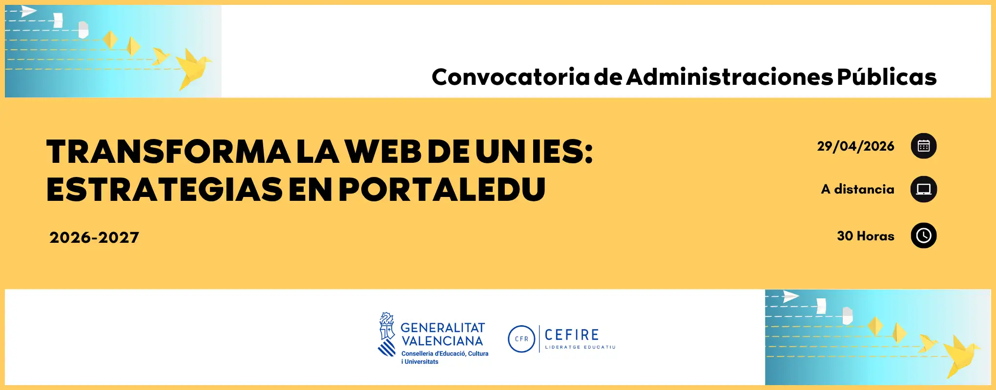 Esta formación te ayudará a dominar Portaledu desde una perspectiva práctica y estratégica, aprendiendo a configurar la plataforma, crear contenidos visuales atractivos y diseñar portadas que guían el usuario. Desarrollarás habilidades para transformar la web de tu IES con una jerarquía visual clara, mejorar la calidad de la información, garantizar la accesibilidad y aplicar criterios de comunicación institucional.