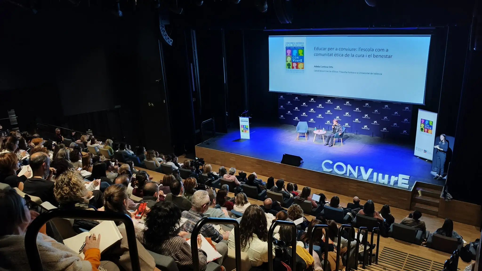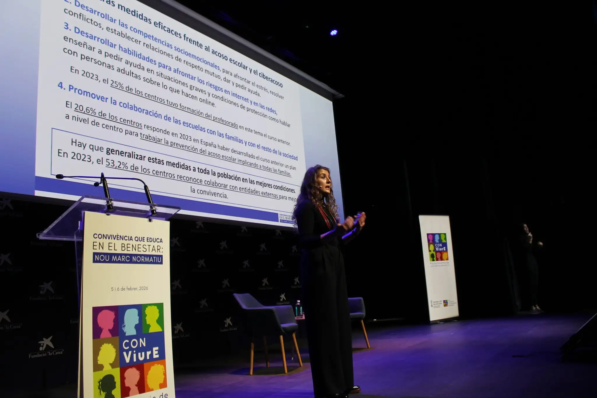 La inauguració va ser a càrrec de la consellera Mª Carmen Ortí Ferré, qui va subratllar que una educació de qualitat cuida les relacions, les emocions i el clima en el qual es produïx l’aprenentatge. Al llarg de les jornades, experts i expertes de reconegut prestigi van abordar àmbits clau com la convivència positiva, el benestar emocional, l’ús responsable de dispositius mòbils, la salut mental, la prevenció, l’assetjament i ciberassetjament, la protecció a la infància i el benestar docent.