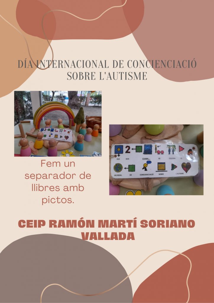 Al nostre centre, com que el dia 2 d’abril és diumenge vàrem conmemorar este dia, que pensem és molt important, ahir dijous, amb treballs realitzats a l’aula i visionat de diversos videos divulgatius, lectura d’un manifest per l’alumnat de 6é, i la fotografia de grup amb la figura de l’infinit de colors, símbol de l’autisme.
