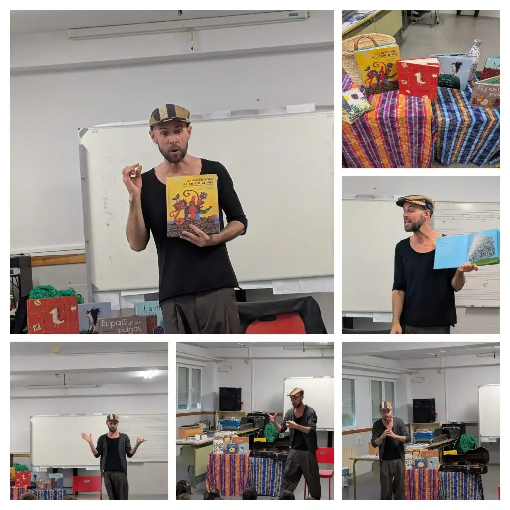 A lo largo de toda la mañana, Alberto realizó cinco sesiones diferentes, cuidadosamente adaptadas a las edades y características de nuestro alumnado, desde los más pequeños de 2 años hasta el alumnado de 6.º de Educación Primaria. Cada sesión fue única: cuentos llenos de humor, historias sorprendentes, narraciones participativas y momentos en los que la imaginación de los niños y niñas voló muy lejos.
