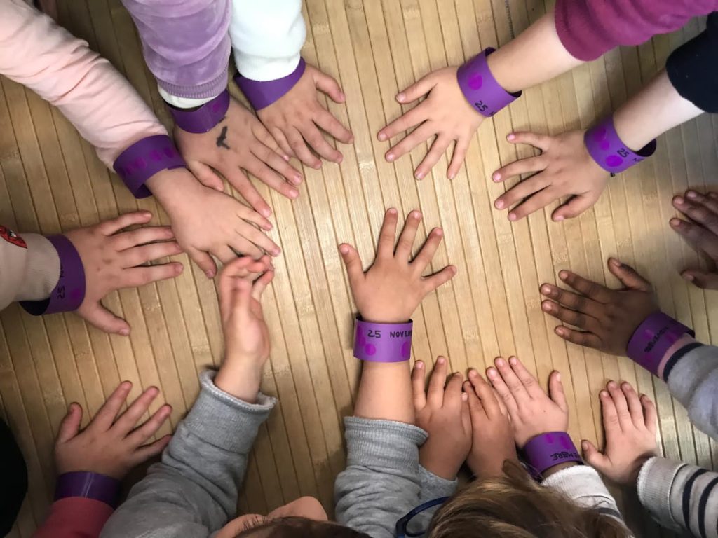 Las coordinadoras de igualdad han preparado un punto violeta, donde el alumnado ha podido escuchar y trabajar la importancia de respetarnos los unos en los otros y de solucionar los conflictos con el razonamiento. Además, se ha puesto un buzón violeta, donde los niños o niñas que quieran comunicar alguna acto de violencia observado o sufrido en la escuela, puedan hacerlo llegar para intentar solucionarlo, razonarlo y que no vuelva a ocurrir.