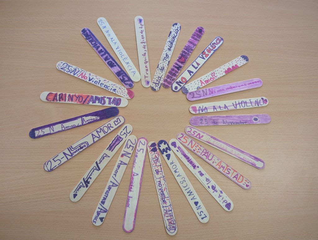 Todos los 25-N se conmemora el Día Internacional para la Eliminación de la Violencia contra las Mujeres, y en nuestro centro hemos trabajado y explicado que hay que erradicar cualquier tipo de violencia hacia cualquier persona, sea hombre, mujer, niño o niña. Porque estamos en contra de la violencia , cualquier que sea ésta.
