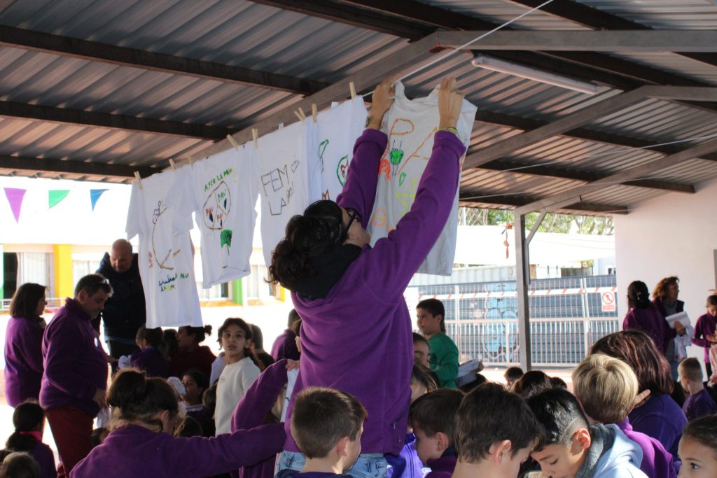 A continuació hem penjat les samarretes que hem pintat al llarg de tota la setmana amb missatges i dibuixos demanant PAU.