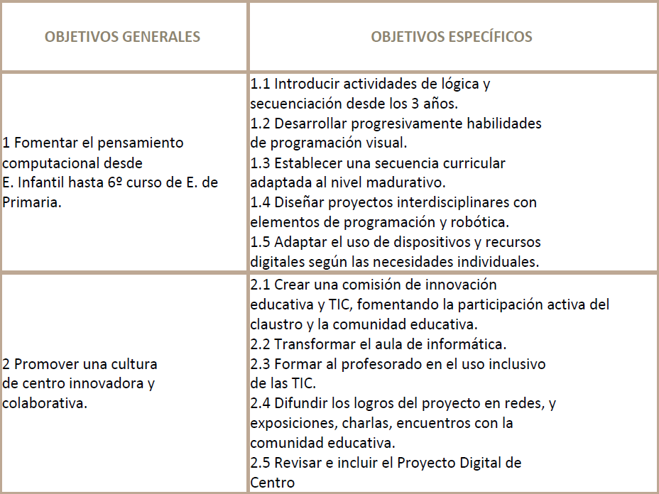 El centro ha detectado la necesidad de mejorar las competencias digitales y de pensamiento computacional del alumnado desde edades tempranas, así como de garantizar la inclusión efectiva del alumnado con NEAE y de compensar desigualdades de acceso a la tecnología.
