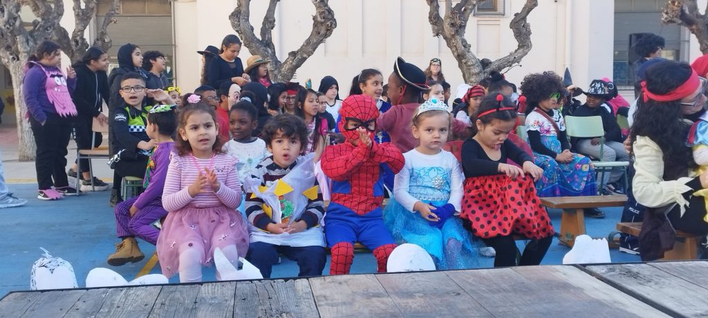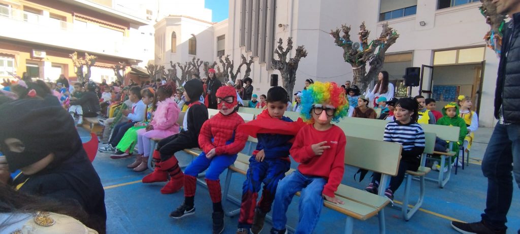 Carnestoltes, carnestoltes, carnestoltes et vull, la la la, lara, lara…! El dia 13 de febrer de 2024 celebrem el carnestoltes en el nostre col·legi. Els alumnes van vindre disfressats i a primera hora del matí va tindre lloc la nostra tradicional desfilada perquè poguérem gaudir de totes les disfresses tan estupends i meravellosos dels nostres alumnes. A continuació, prenem mona amb xocolate, per cortesia de l’empresa del menjador, i els alumnes van gaudir, al costat dels seus companys, de música de carnestoltes al pati. Va ser un dia meravellós.