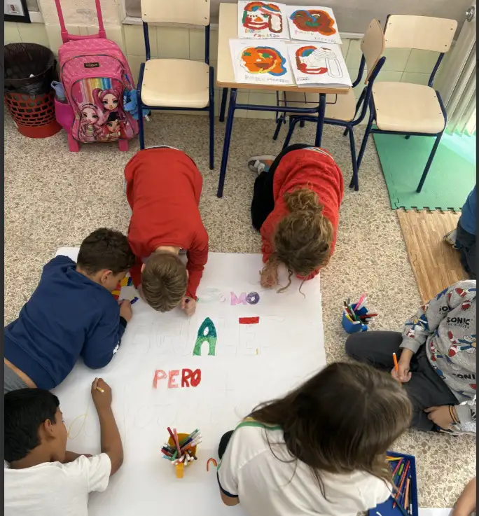 - Nuestro producto final: Para sellar este compromiso, toda la clase ha colaborado en la creación de un gran mural con manos de colores. Cada mano representa a un alumno o alumna, y juntas forman un diseño que demuestra que, aunque somos distintos, todos formamos un equipo unido.