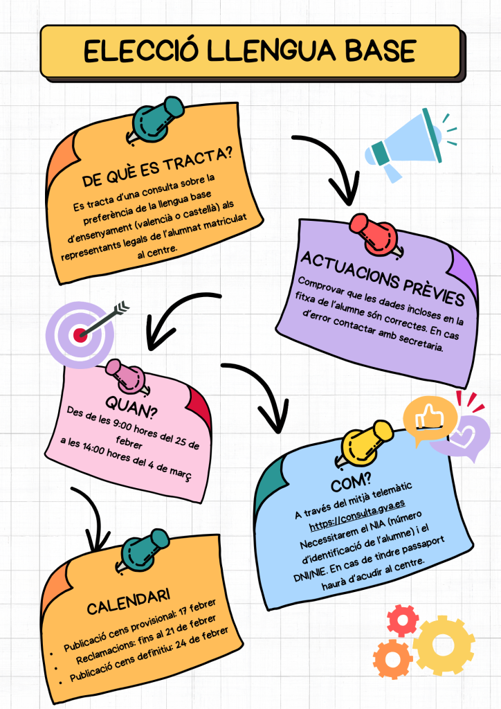 Us informem que el procediment d’admissió i matrícula per al curs 2024-2025 s’obrirà el proper dilluns 6 de maig. Tota la informació relativa al procés estarà disponible a la pàgina web oficial de la Conselleria d’Educació, a través de la plataforma AdmiNOVA: