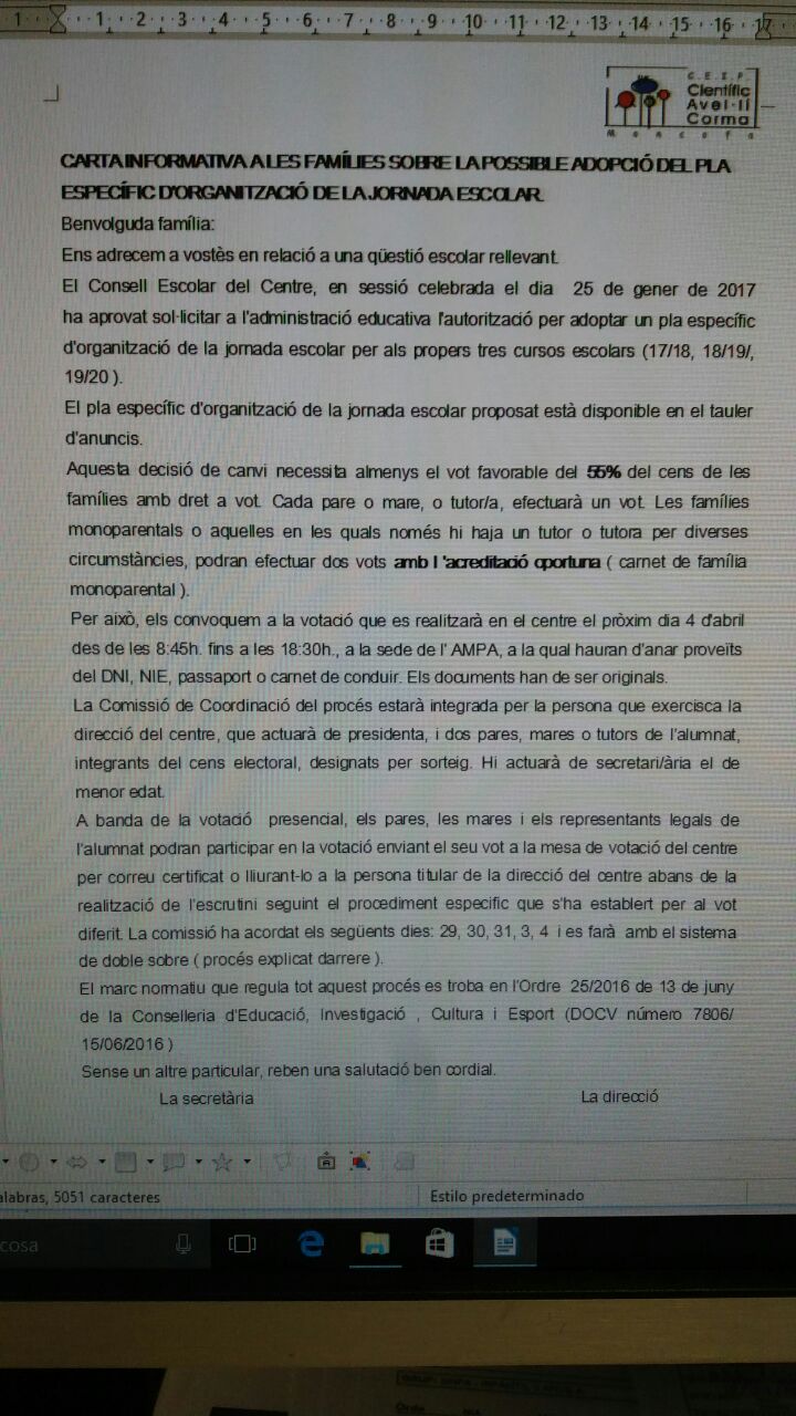 Així com tots els dubtes que tingau sobre aquesta nova distribució de la jornada educativa de tota la comunitat que hi treballem.