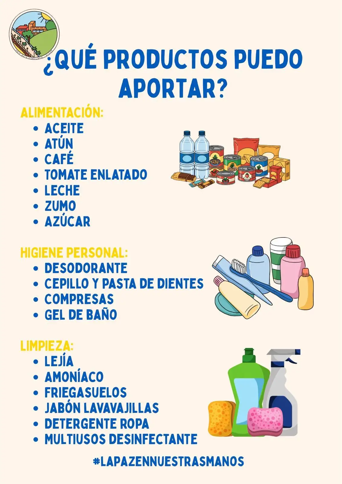 El alumnado, las familias y el profesorado pueden participar aportando productos de alimentación, higiene y limpieza, que se recogerán en las cajas habilitadas en el hall del centro.