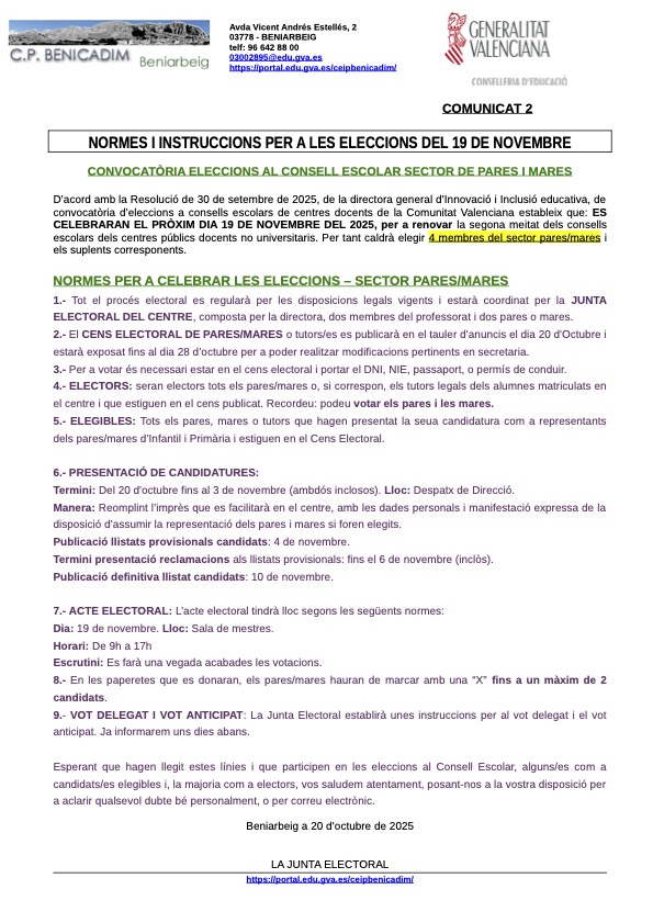 ELECCIONS AL CONSELL ESCOLAR 2025