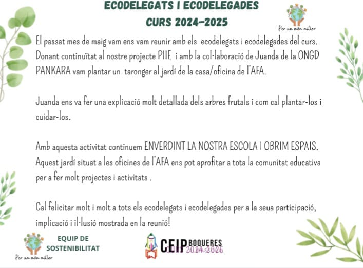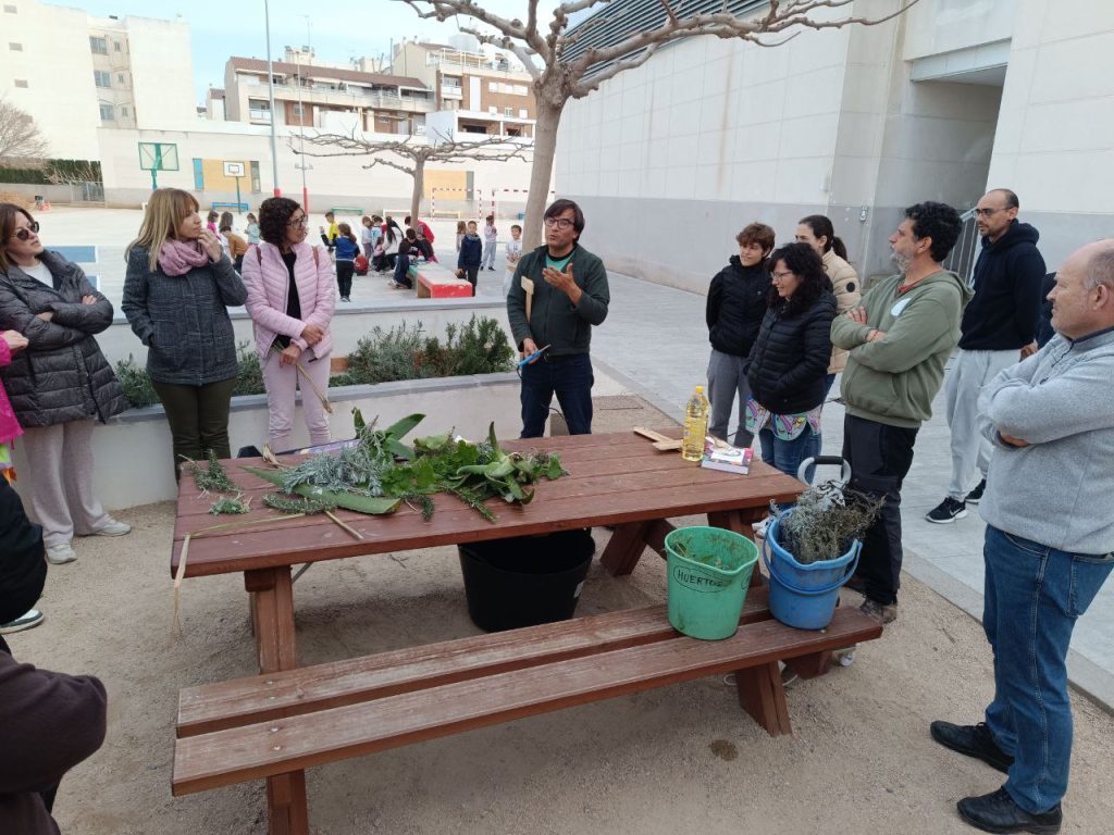 El claustre del CEIP Boqueres s’ha iniciat en la formació relacionada amb la millora dels espais naturals del centre. En aquesta sessió Juanda i Oscar, de la ONGD Pankara, van compartir informació sobre les “plantes aromàtiques” ja que són un recurs que tenim a l’abast en la nostra escola. Van començar amb la presentació de les plantes que podem trobar a l’entorn més pròxim i d’aquelles que són més conegudes. De cada planta van destacar les seues propietats, característiques, i possibilitats didàctiques.