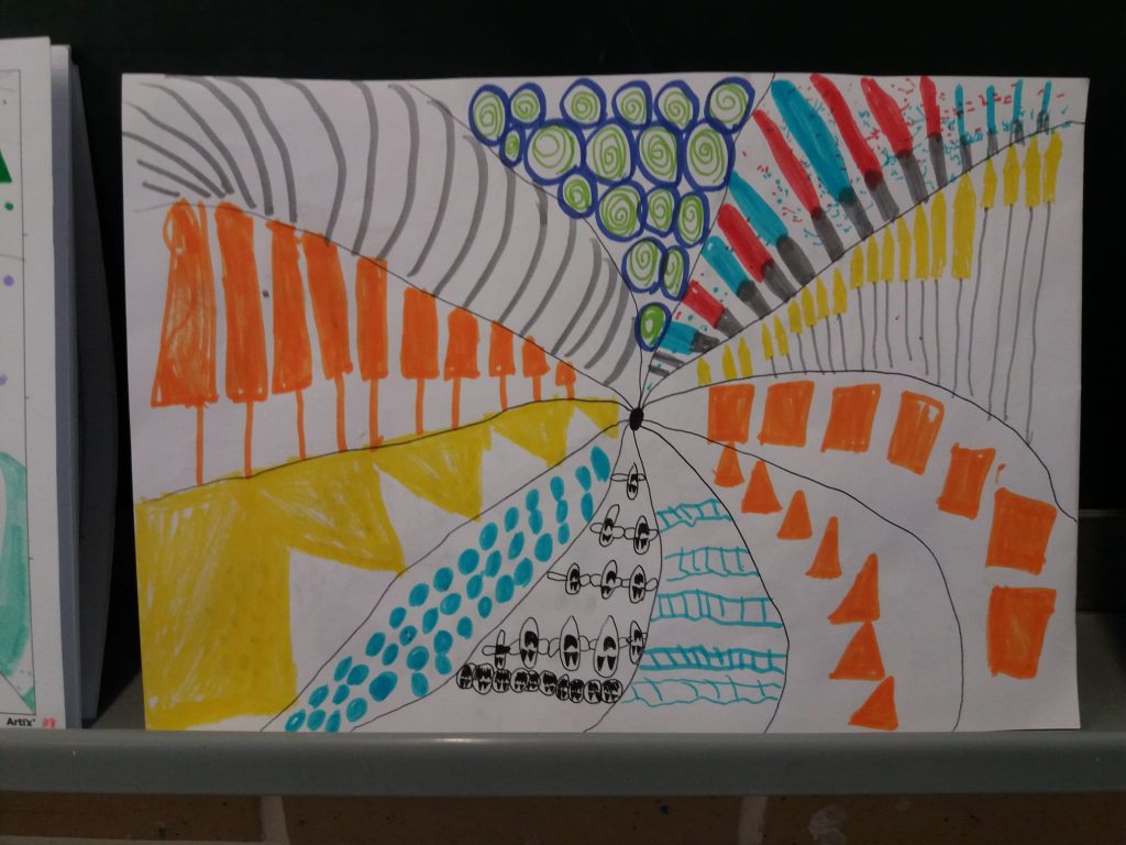 Als cursos de 4t 5é i 6é hem treballat les perspectives mitjançant diverses activitats. A 4t amb cercles concèntrics pintant en blanc i negre i en colors per crear efectes òptics de perspectives. A 6é ha treballat també la perspectiva i les il·lusions òptiques primer amb línies paral·leles i després creant composicions desequilibrades que accentuen la sensació de profunditat. A 5é ha treballat creant perspectives de figures geomètriques creant la il·lusió òptica de profunditat portant els objectes al primer pla.