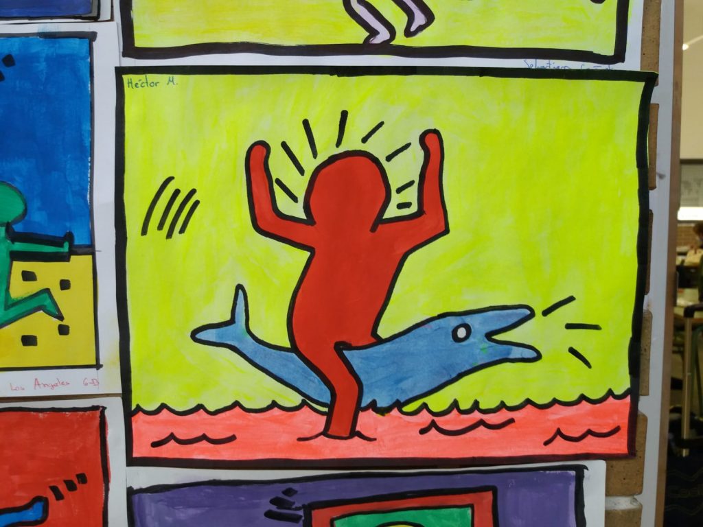 Inspired by the artist Keith Haring we have worked the concept of body and movement by drawing silhouettes in motion escaping from the board.
