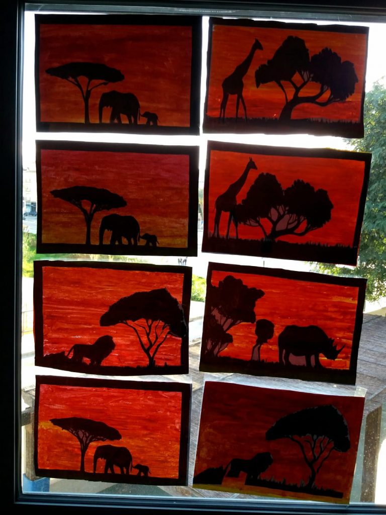 In our school we have decorated our own elephants with geometrical patterns. First, we have worked apart on geometrical and organic patterns and then we have used them to decorate the silhouettes.
