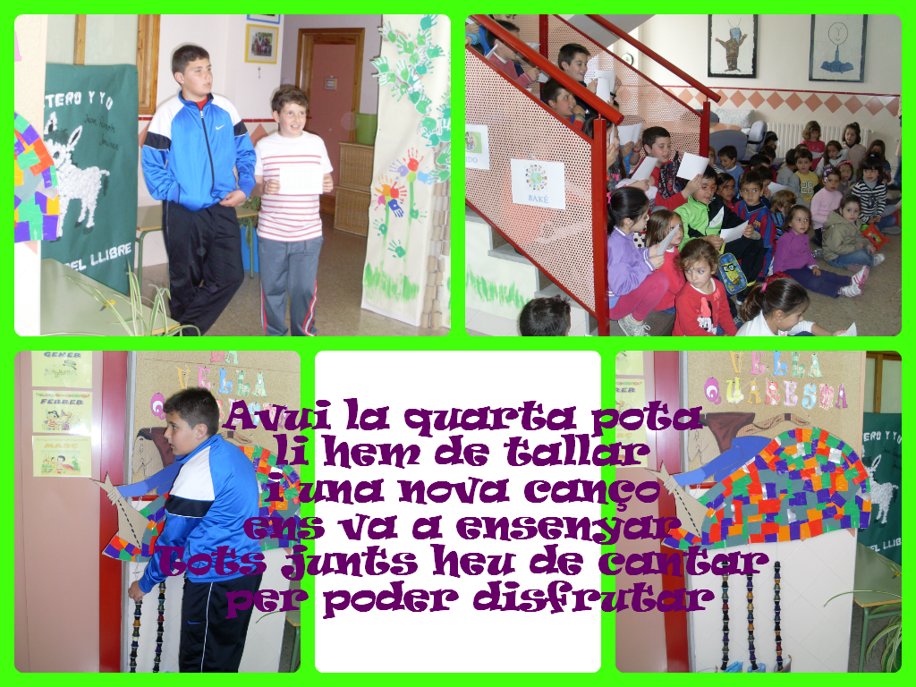 Nosaltres hem fet una Vella Quaresma. L’hem penjada al hall del nostre centre i cada divendres li treurem una de les set cames que porta.