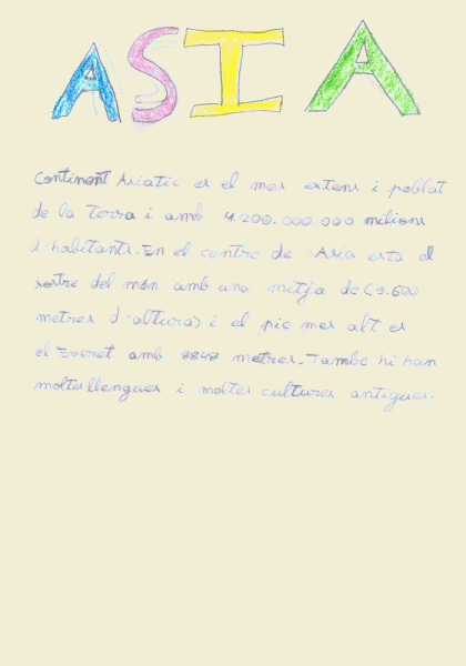 L’alumnat disposa d’un carnet de lectura on estan els cinc continents. Cada dues lectures fan el canvi de continent i porten a l’aula algun tipus d’informació del contenint que han completat. A les aules tenim un mural mapa mundi…
