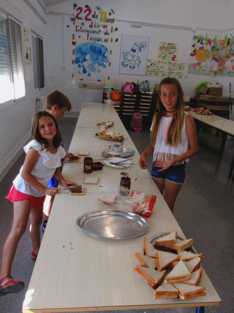 A continuació alumnes, pares i mestre carreguen les piles amb un esmorzar…