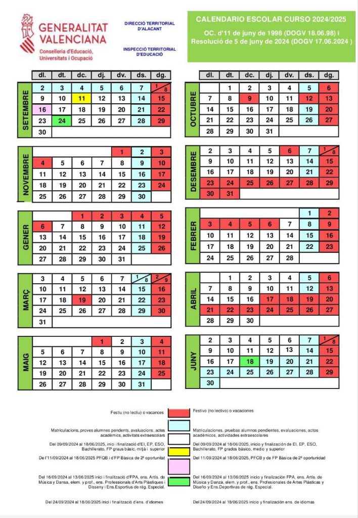 Calendario escolar del curso 2024/2025