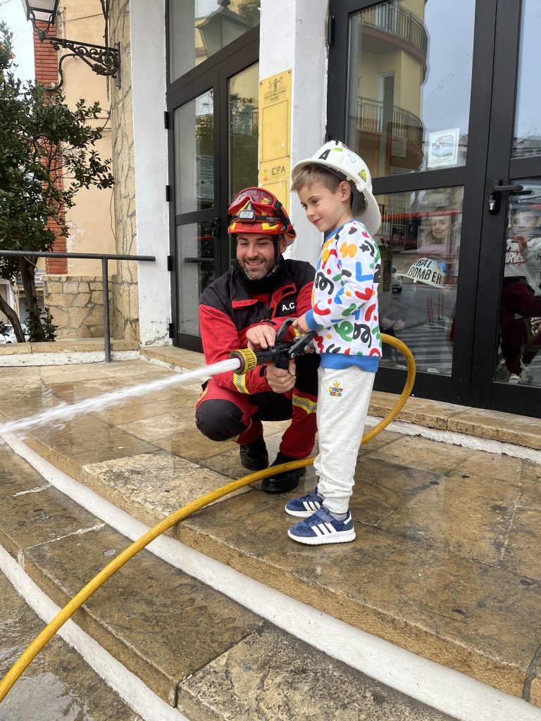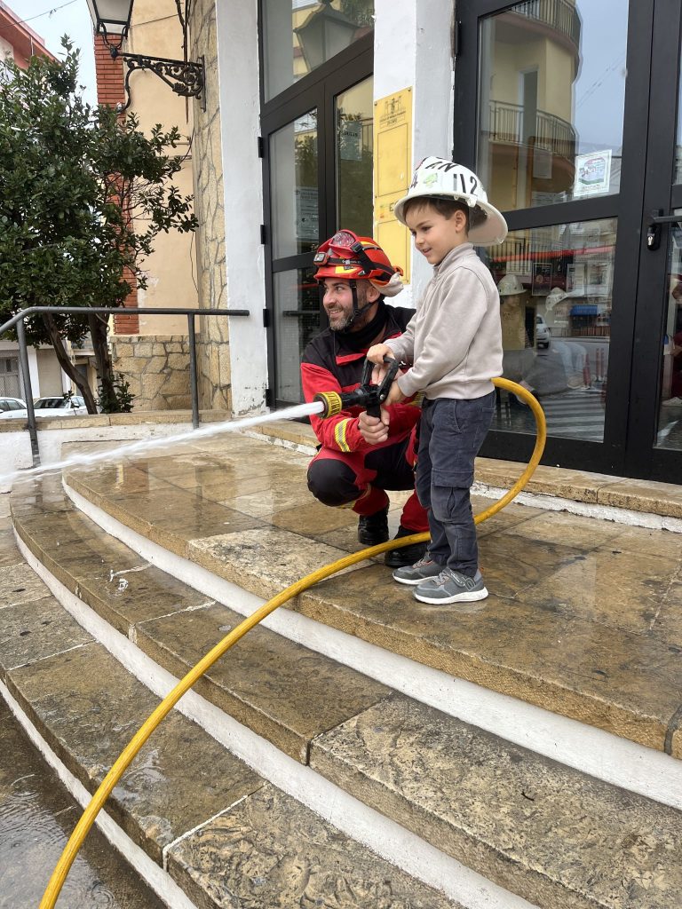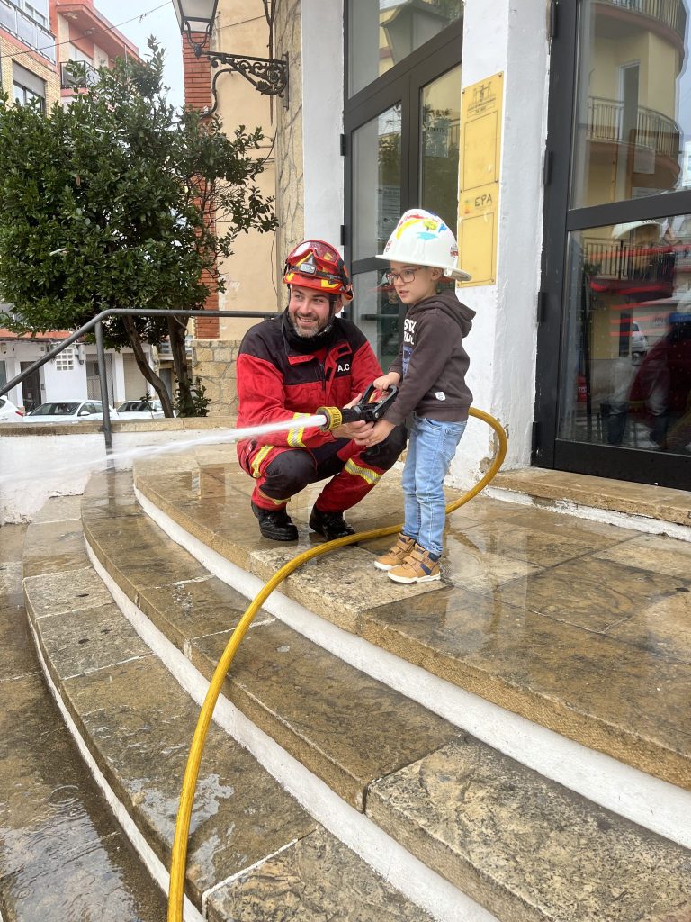 PER ÚLTIM, I ENCARA QUE EL TEMPS NO ENS HA ACOMPANYAT PERÒ LES GANES SI, HEM PASSAT A L'ACCIÓ I ENS HEM CONVERTIT EN AUTÈNTICS BOMBERS UTILITZANT LA MÀNEGA PER VEURE COM S'APAGA UN INCENDI, I LA MESTRA HA ACABAT A REMULLA!