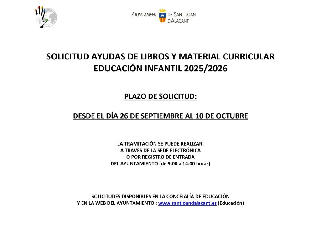 Y EN LA WEB DEL AYUNTAMIENTO : www.santjoandalacant.es (Educación)