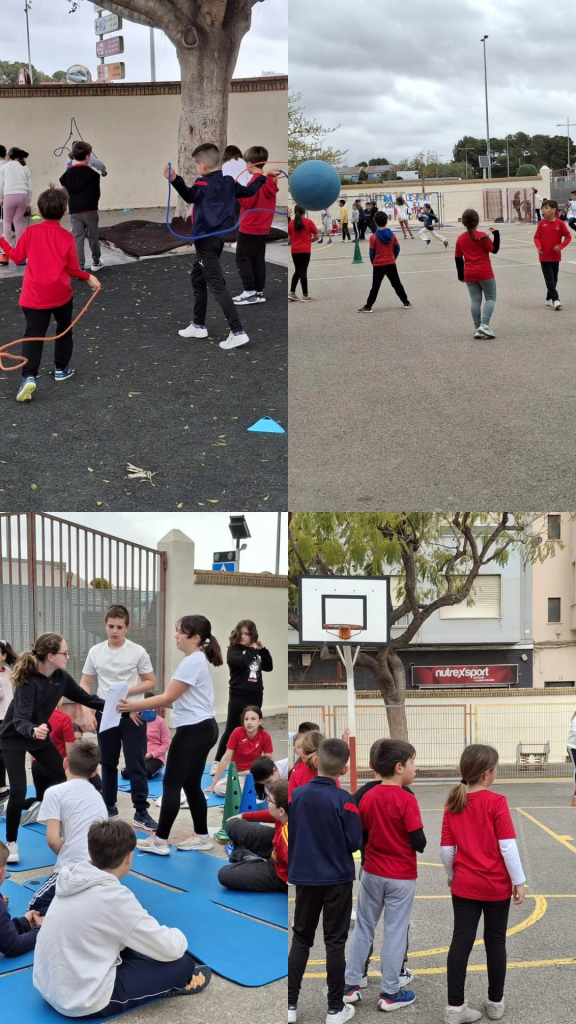 Al començament, una alumna de 5é i un alumne de 6é van llegir el manifest contra el bullying. Després, vam gaudir, tant Infantil com Primària de 8 proves rotatives diferents per cada etapa, on vam jugar a relleus, esports alternatius com el colpbol o el kinball, o participar en circuits i proves de força, salts o balls. Finalment, els mestres vam jugar un partit de colpbol contra 6é, ens vam fer una fotografia i es van entregar les medalles que cadascun d’ells havia elaborat a Arts and Crafts.