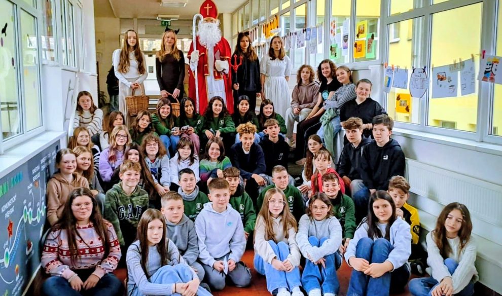 Tras conocer las instalaciones del colegio anfitrión, los alumnos han recibido una inesperada y entrañable visita de San Nicolás.