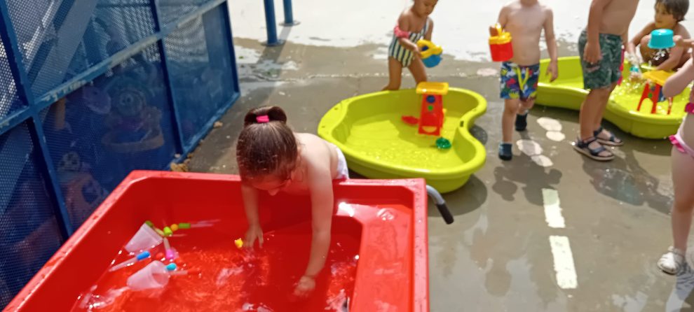 Hoy toda la etapa de infantil ha realizado unos talleres de agua con diferentes propuestas: Construcciones con tapones, bañamos a los muñecos, lavamos y tendemos ropa, pomperos, trasvases, pintamos con tizas mojadas, pasamos por la telaraña…