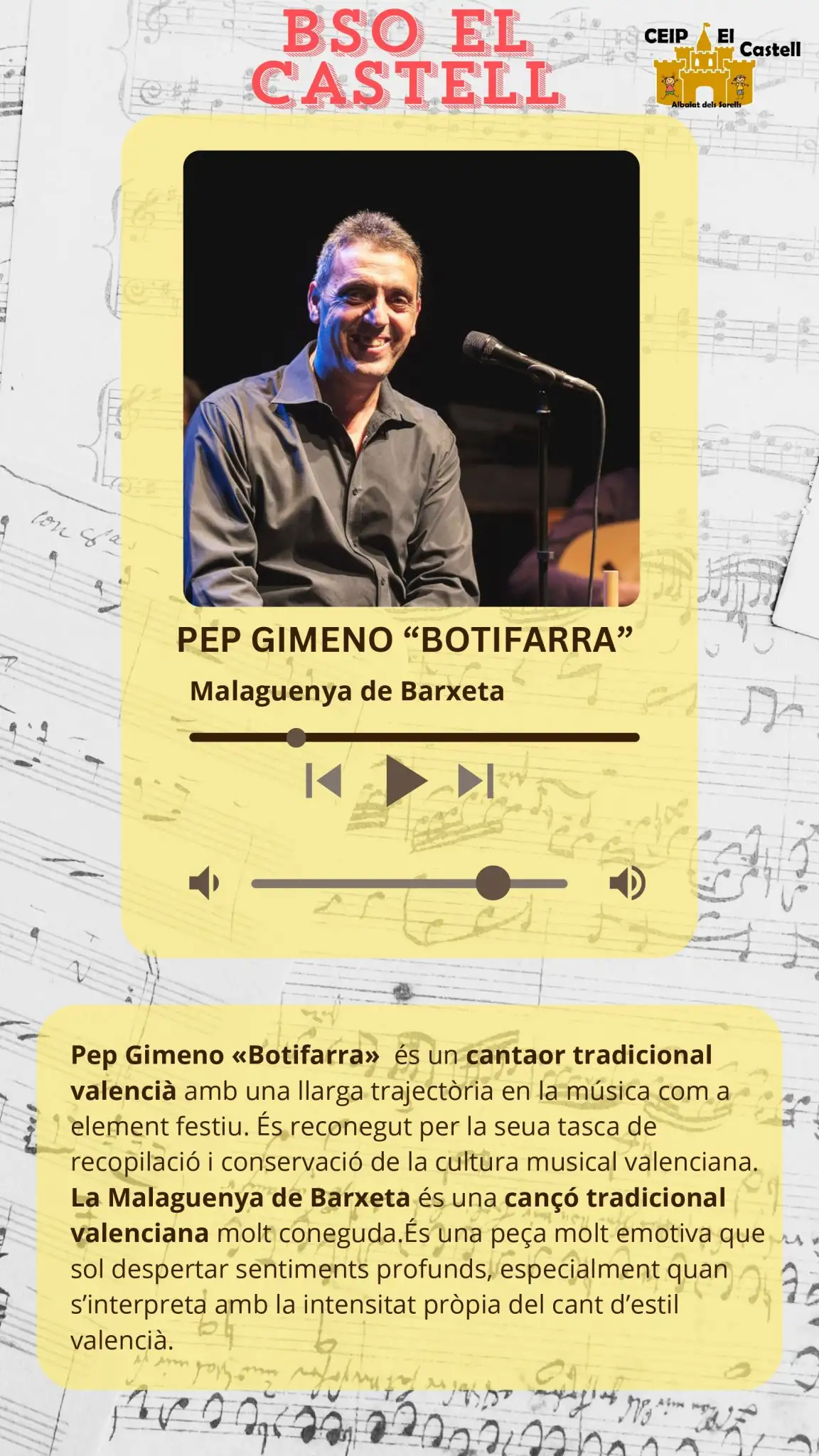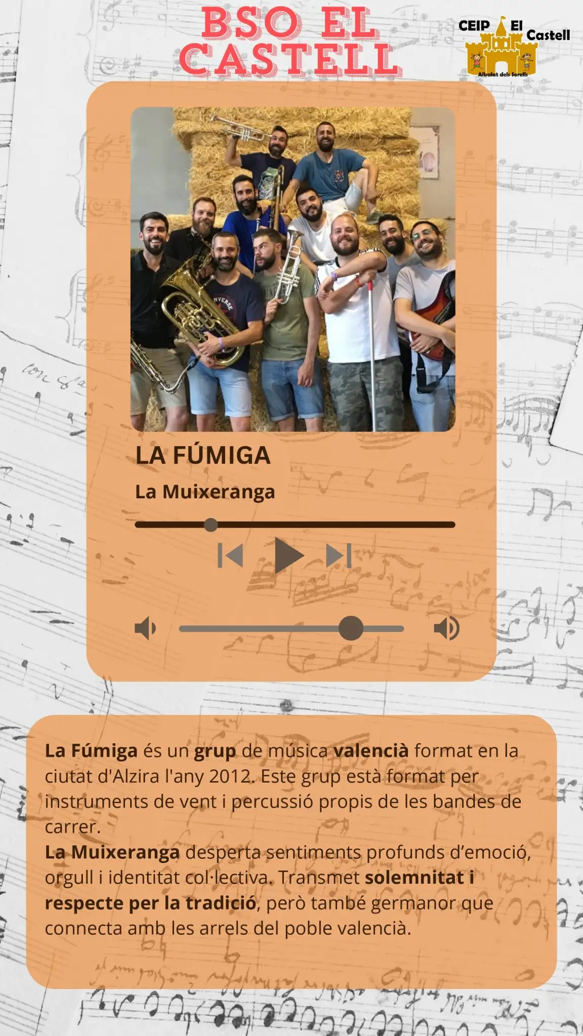 Des del Castell, entenem que la música inunda els sentiments, anima l’esperit i es grava als nostres records. Per això, aquesta BSO vol ser un regal per a la comunitat educativa, perquè la vida al centre siga feliç, animada i plena de bons records. A continuació anirem actualitzant allò que sona al centre, perquè pugues sentir-lo tu també a casa! 👇🏼🎶▶️