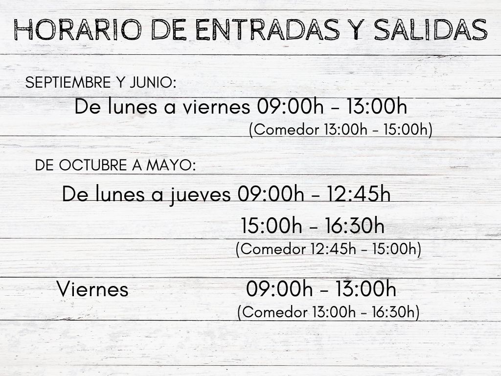 A continuación os dejamos unas imágenes con el horario del centro, las cuales indican las entradas y salidas ordinarias y especiales:
