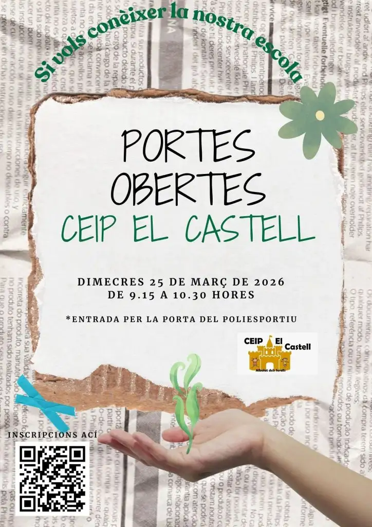 El proper 25 de març l’escola obri les seues portes per a aquelles famílies que estiguen interessades en conéixer-nos. Vos convidem a entrar, veure’ns i resoldre dubtes respecte a la futura escolarització dels i les vostres fills i filles.