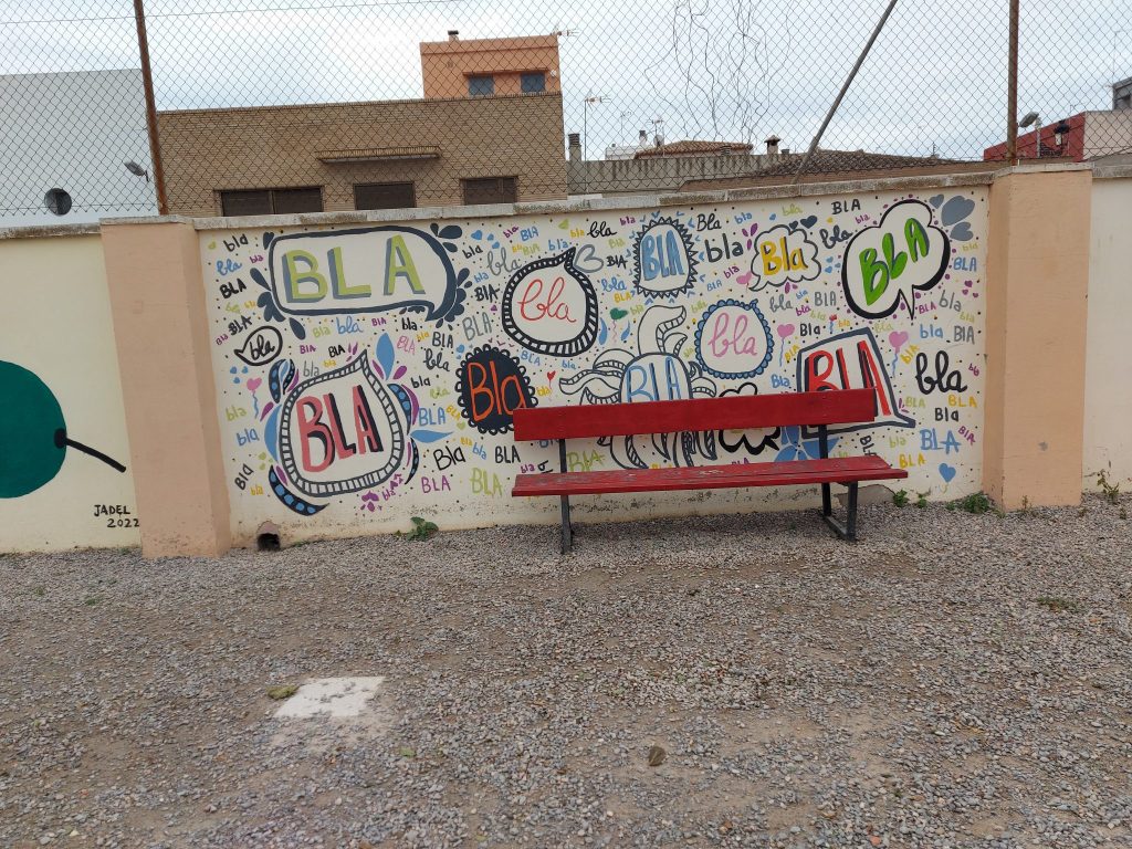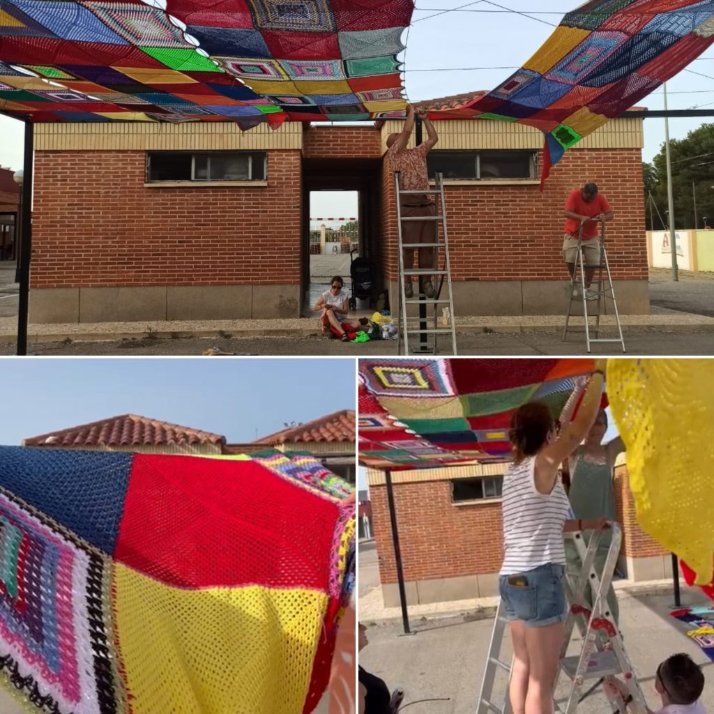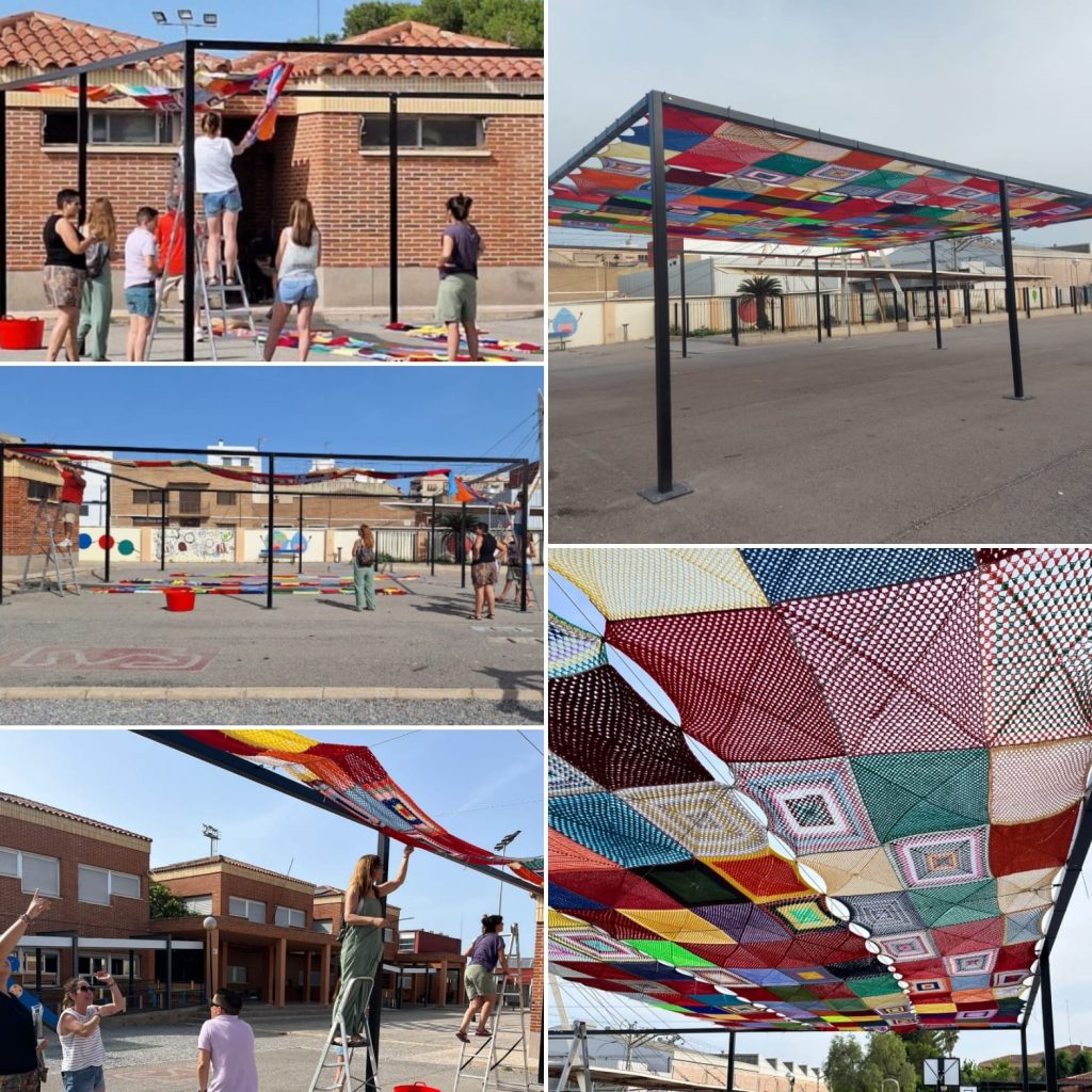 L’escola, des de la Comissió de Patis, juntament amb l’Ajuntament d’Albalat dels Sorells, hem llançat la iniciativa de teixir l’ombra del pati amb aquesta proposta. Per a abraçar la col•laboració de la població, a més de posar els granny square com a toldo en l’escola, posarem una tira de grannies en aquesta placeta al costat de la biblioteca del poble.