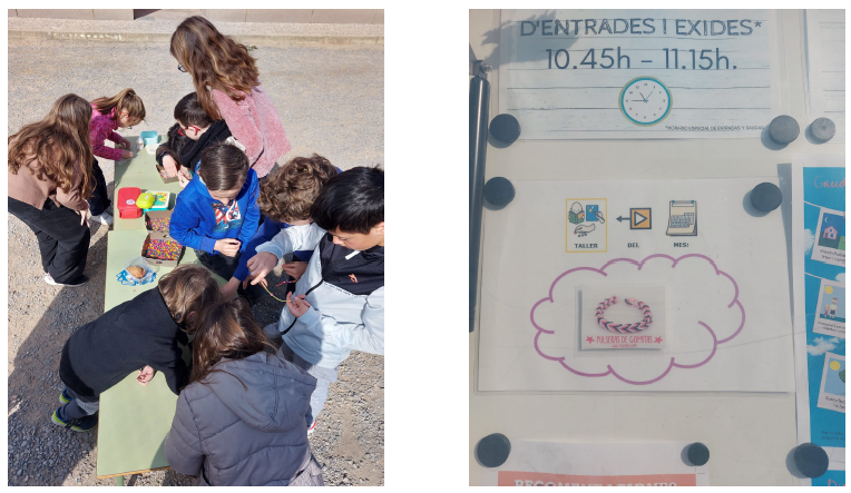 Des de febrer hem estat realitzant tallers a l’hora del pati. Hem fet un al mes i els hem anat anunciant al tauló d’anuncis de l’entrada a l’escola, com podeu veure a la imatge. Aquest curs les vostres filles i fills han participat en tallers de: diferents tipus de polseres, punts de llibre i clauers. Han trobat una nova forma d’entreteniment i aprenentatge a l’escola.